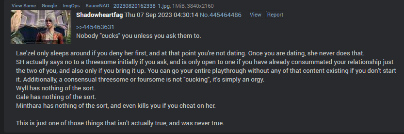 >>556609027Lae'zel is a gall and she likes to break people (in half). >>556609297Some guy called the game's writers the 7-Men Cuck Squad and they loved it. Do I need to say more?