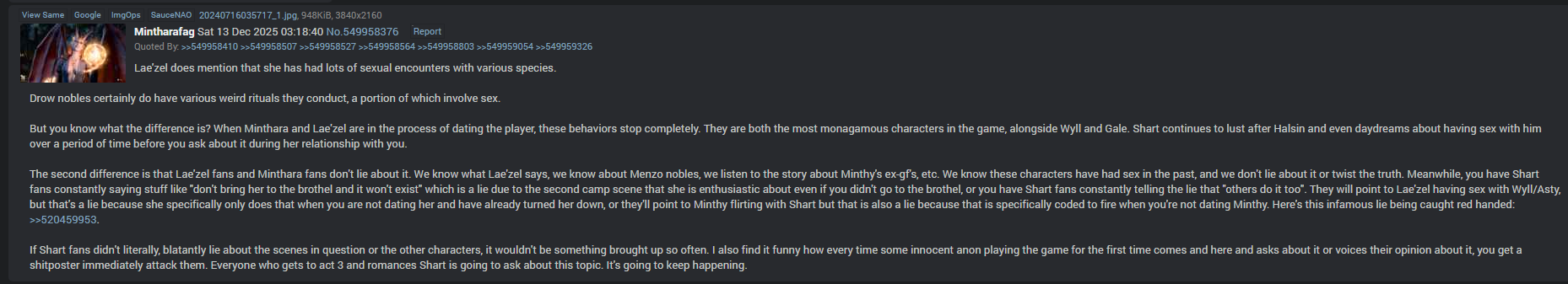 >>556295942Forgotten Realms is a setting made by a guy who writes essays on how drow breastmilk tastes so yes, Larian was true to Greenwood's spirit.