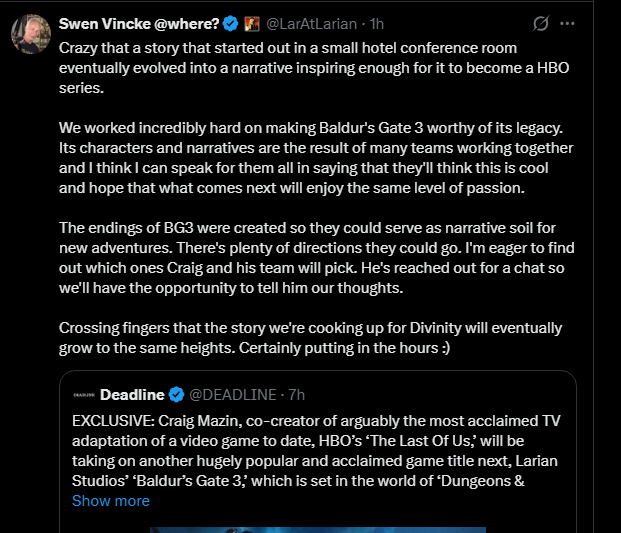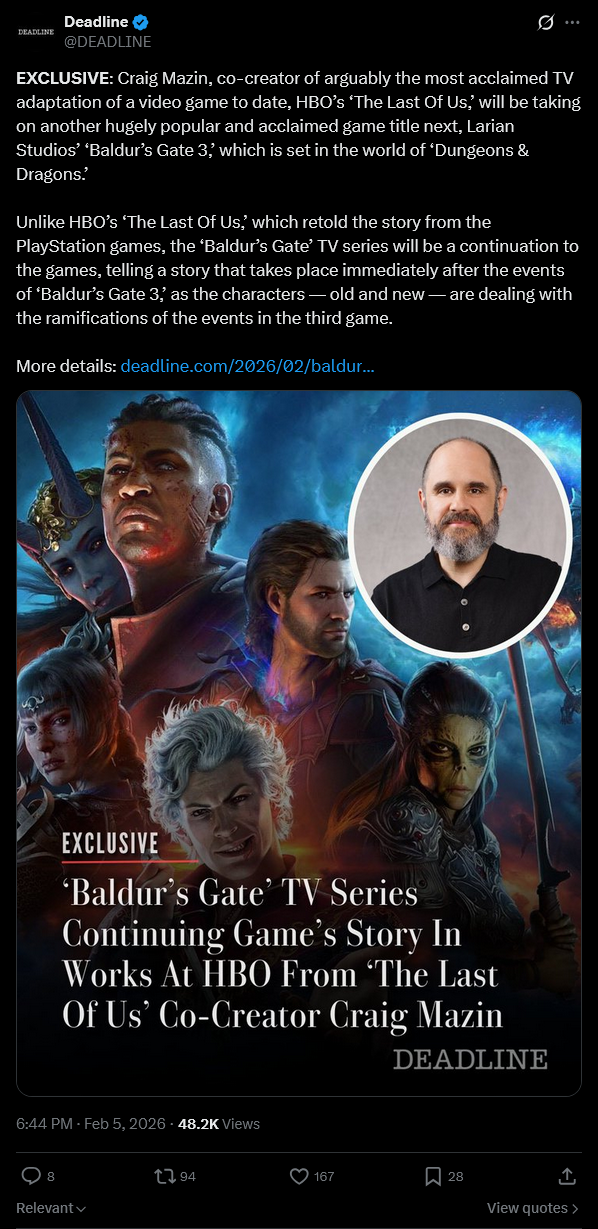 the BG3 tv show will probably release around 2030 or later. Fucking hell
