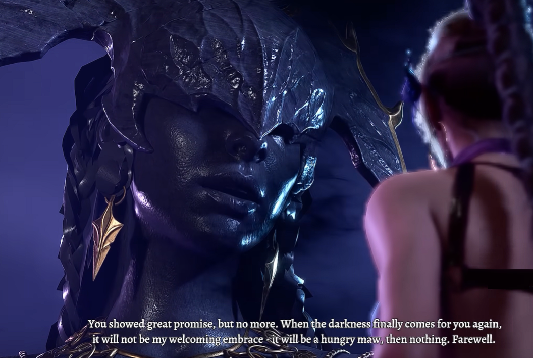 >>556642681She did stay voluntarily on Toril when I kept her a Vlaakith loyalist and let Emperor eat Orpheus, and after the final battle asked her to do whatever she wants.
