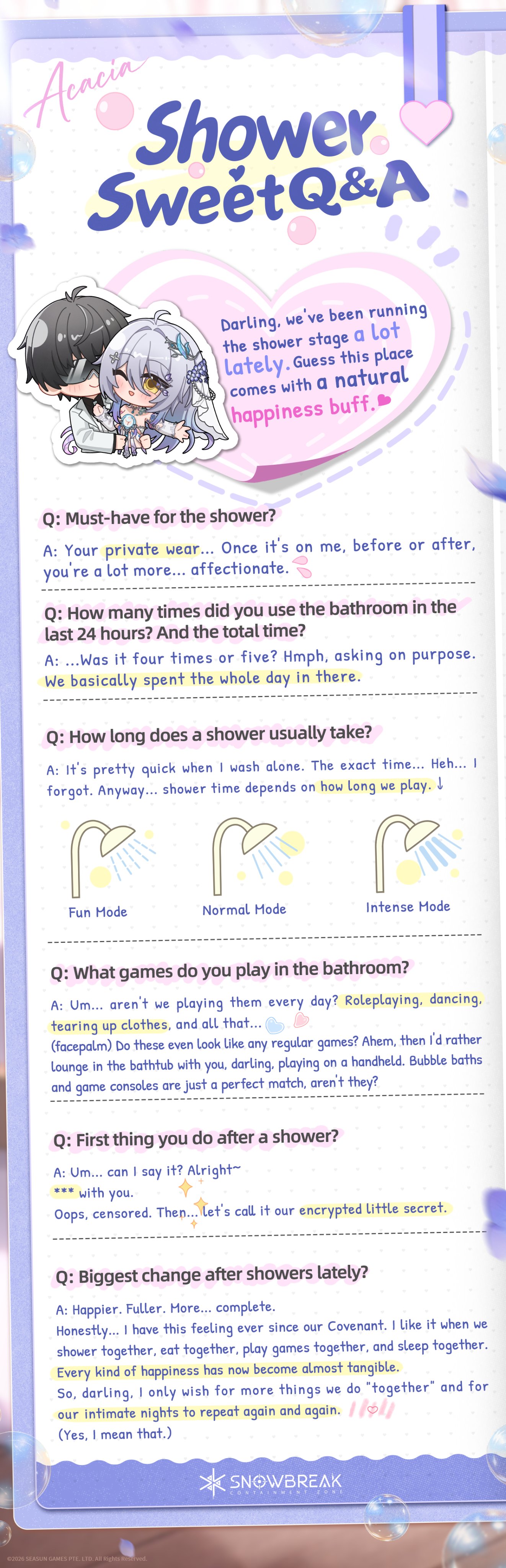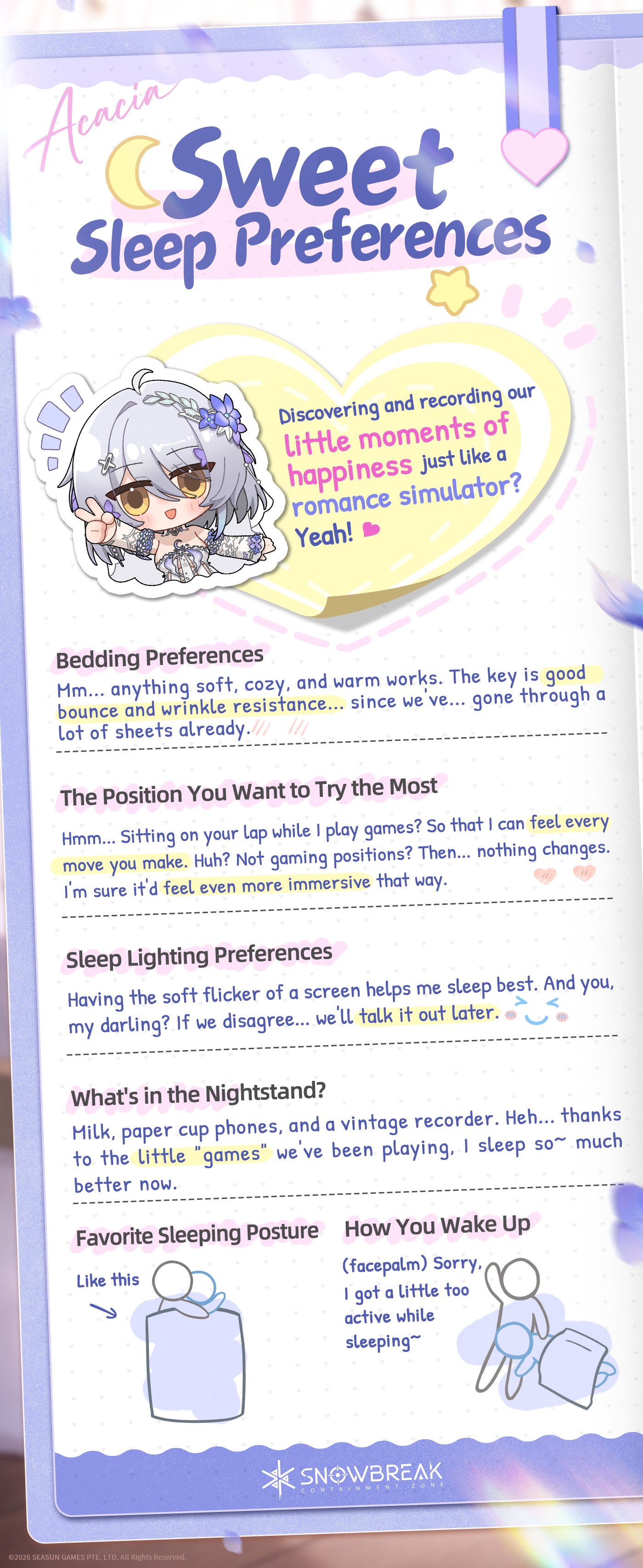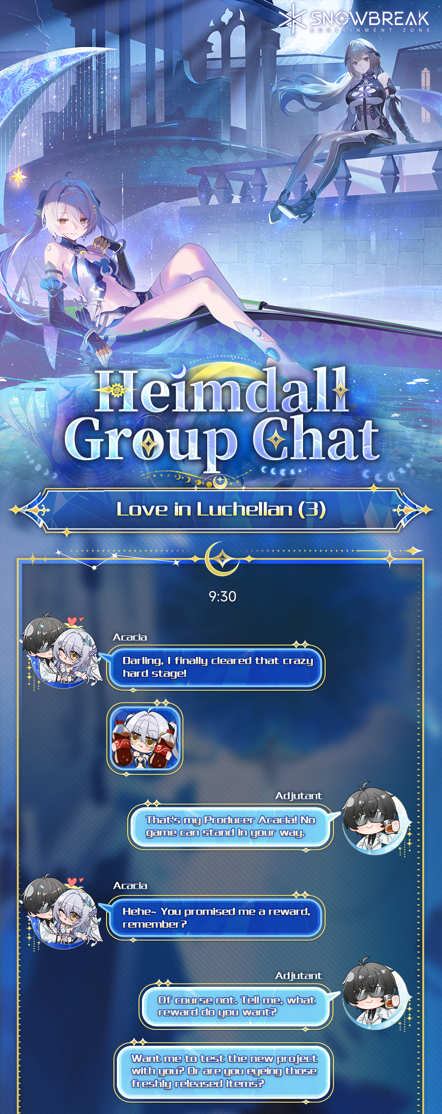 >Decensor Guidehttps://rentry.org/begoneclouds>Trailers3.5 Trailer: https://www.youtube.com/watch?v=wkF3MLwlZ-03.5 Stream: https://www.youtube.com/watch?v=lF76XrT_YicAcacia - Chrono Echo Operative Trailer: https://www.youtube.com/watch?v=MoDOWs-FqeQ>Newshttps://x.com/SnowbreakEN>PlatformsAndroid/iOSPC (Recommended): Standalone launcher, Steam, EGSDownload from main site: https://snowbreak.amazingseasun.com/>Current & Upcoming Events[Jan 29 - Mar 12] Expedited Access to Chapter 16 “Back from Bygone”[Jan 29 - Feb 26] Supreme Battleground[Jan 29 - Mar 12] Let’s Optimize, Heimdall![Feb 05 - Mar 12] Dono Duel[Feb 12 - Mar 12] Special Invitation (Claim Marian - Aquila for free)[Feb 12 - Mar 04] Starward Defense[Feb 16 - Mar 12] Heartfelt Messages[Feb 23 - Mar 09] Clash of Honor[Feb 26 - Mar 12] Hero Games>Current & Upcoming Banners[Jan 29 - Mar 12] Acacia - Chrono Echo | Moonwake Blade[Jan 29 - Mar 12] Banner Selector 1 (Choose one of Chenxing - Ethereal Cloud, Cherno - Enigma, Katya - Dawnwing and Vidya - Celestial Swan)[Jan 29 - Mar 12] Banner Selector 2 (Choose two of Lyfe - Infinite Sight, Fenny - Starshine, Chenxing - Jade Arc, Yao - Nightglow, Enya - Tempest, Katya - Rhapsody and Tess - Phantasia)[Feb 12 - Mar 12] Marian - Aquila | Core Prism[Feb 19 - Mar 12] Fenny - Pureheart | Welkin Starflare[Feb 19 - Mar 12] Siris - Freefin | Splash Glider>Codes (Redeem in [Settings > Other])followusACACIAEXPUPMARIANNIGHTPULSINGLOVE>/snowg/ Resource Pastebinhttps://rentry.org/snowg-resources>100 Pity Banner Type Detailshttps://rentry.org/snoblerate>/snowg/ Friends Formhttps://forms.gle/QaJ8N1x3MPo2JPKL7https://docs.google.com/spreadsheets/d/18uvxL8bqODpq0AxdzDE_0ho9FSs4P4fyecM Ut6ndQfM/Previous: >>556025201