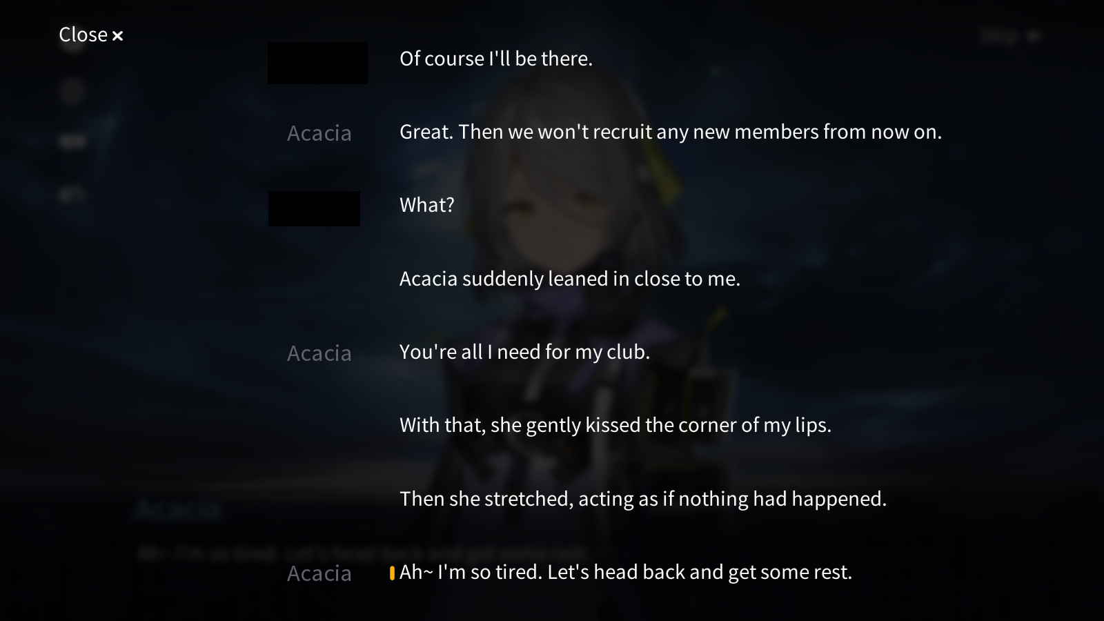So doing this, the actual meaning of [Redacted] isn't because Acacia was a secret agent, but because she undergone Manifestation training, in which she developed those skills, but was put into stasis later as a mean to dispose of her?One thing I don't understand: she was trained to be a Manifestation subject BEFORE entering stasis. But Manifestations should be something as recent as the First Descent. So would that mean the reason of the disposal is exactly because it would tie her to the experiments of the Board of Directors? As in, data they'd use to cause the First Descent later?
