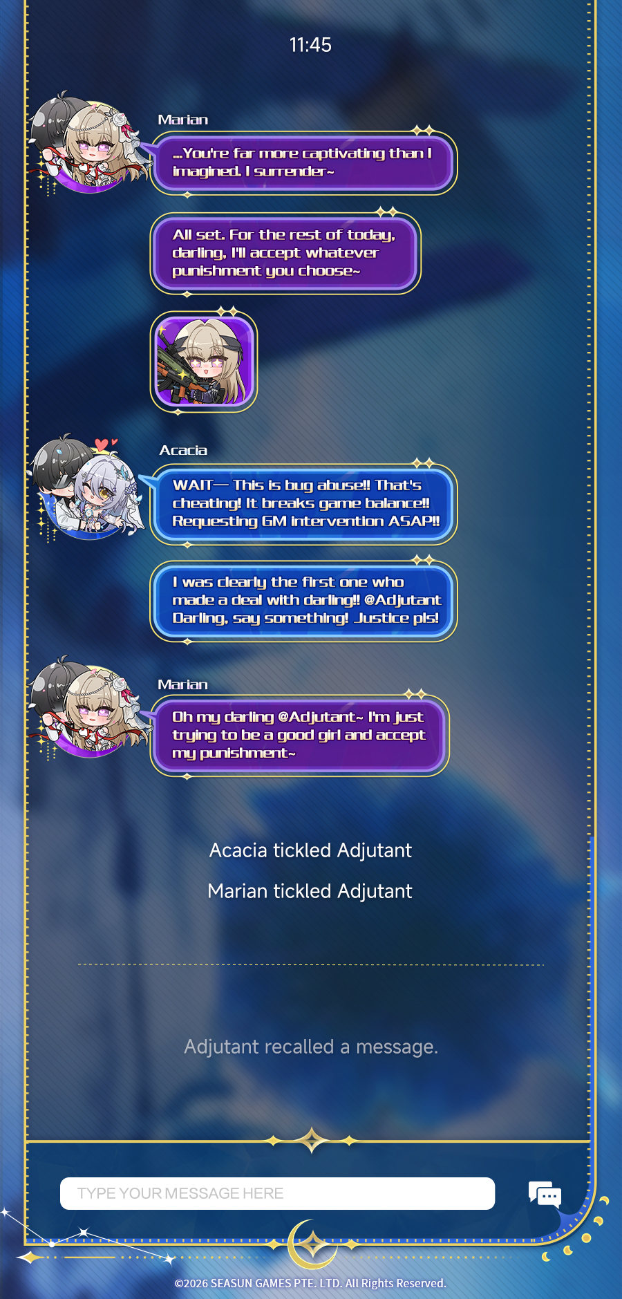 >Mia says: chadjutantSuddenly I feel like no longer playing this game.