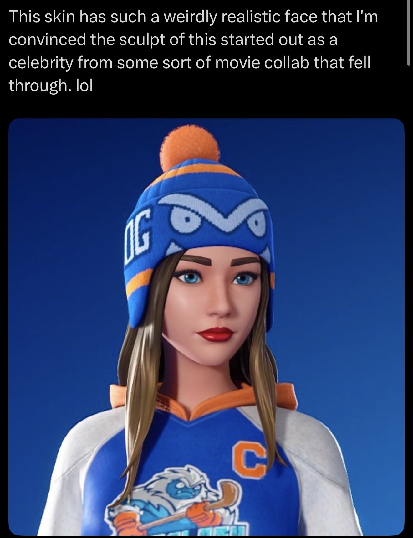 >>556355270like i said here >>556391921 blue was better in every way aside from the hair and makeup change. they fucked this bitch up.Epic cant just stick to a simple fucking concept art. gotta say "i went to community college for my art degree. i have a passion" and pull some bullshit outta their ass to ruin skins.