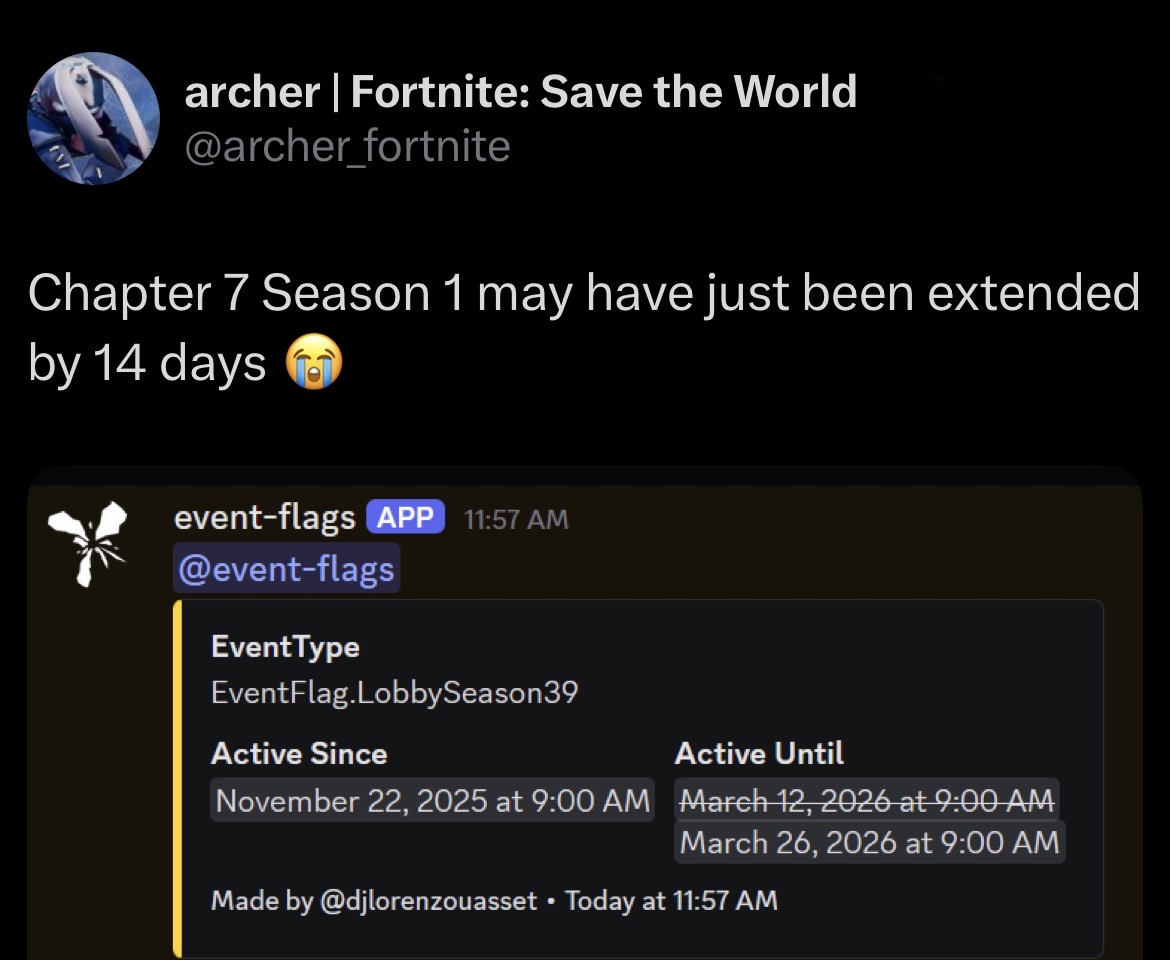 >Born in Chaos - South Park Drops Into Fortnite!https://www.youtube.com/watch?v=13QoRmIFK0c >Fortnite Battle Royale Chapter Seven: Pacific Break | Gameplay Trailerhttps://www.youtube.com/watch?v=Tv2zM8jI4gU>Fortnite Battle Royale Chapter Seven: Pacific Break | Cinematic Trailerhttps://www.youtube.com/watch?v=Eln66CJHna8 >Surf To a New Island in Fortnite BR Chapter Seven!https://www.fortnite.com/news/fortnite-battle-royale-chapter-seven-pacific-break-v39-00-update-notes>Fortnite’s Zero Point: The Story So Farhttps://www.youtube.com/watch?v=sfVP0dPJcgo>Quests, stats, shophttps://fortnite.gghttps://fortnite.gg/statshttps://fortnite.gg/shophttps://www.fortnite.com/item-shop>Season XP Leveling Pacehttps://www.fortnitexp.net/>Mission Alerts for StWhttps://freethevbucks.com/timed-missions/https://fortnitedb.com/>Crown Jam: A Limited-Time Fortnite Mode from the Fall Guys Worldhttps://www.fortnite.com/news/crown-jam-a-limited-time-fortnite-mode-from-the-fall-guys-world>“South Park: Born in Chaos” Comes to Fortnitehttps://www.fortnite.com/news/south-park-born-in-chaos-comes-to-fortnite>Chappell Roan Rides into Festival for Season 13!https://www.fortnite.com/news/chappell-roan-the-midwest-princess-rides-into-fortnite-festival>Master Your True Potential in LEGO® Fortnite Odyssey’s NINJAGO® Updatehttps://www.fortnite.com/news/master-your-true-potential-in-lego-fortnite-odysseys-ninjago-update>Fortnite Ballistic v37.10 Adds the Veiled Precision SMG, Deployable Wall Gadget, and Morehttps://www.fortnite.com/news/fortnite-ballistic-v37-10-adds-the-veiled-precision-smg-deployable-wall-gadget-and-more>Fortnite Crew February 2026 - Soleilhttps://www.fortnite.com/fortnite-crew-subscriptionPrevious:>>556203131