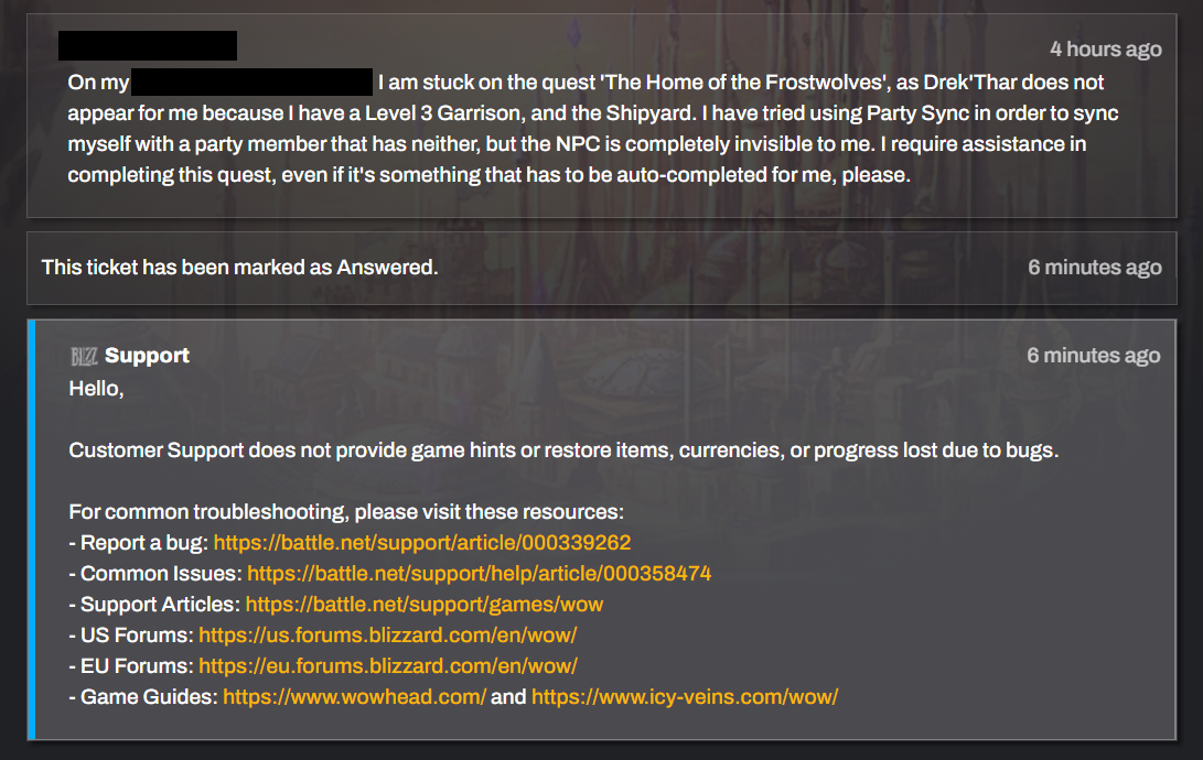 Hot take: Blizzard has the worst customer service in the entire industry