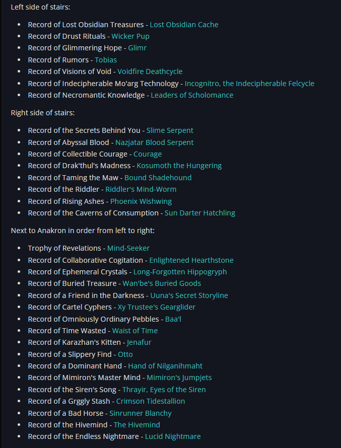 >>556314070>>PathfindingBRD>>Skill expressionLBRS>>PuzzlesUBRS>>LogisticsAQ>>TrapsBWL>>Meaningful progressionBWL fire resist>>DifficultyBWL, Naxx>>Multiple avenues to completionAll dungeons and raids>>Build expressionAQ, Naxx