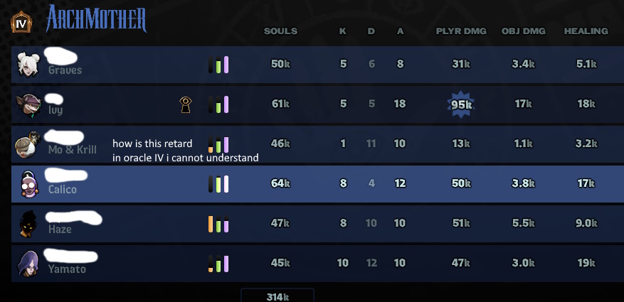 >>556329110I'm glad they nerfed Silver's ult in the early game, having to deal with a furry every 30 seconds was a nightmare and you were forced to burst her down instantly or else she'd heal back to half health and eat your ass