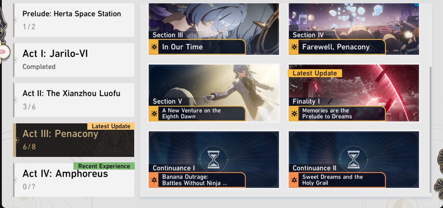 Previous: >>556278184>Version 4.0 "No Aha At Full Moon" Special Program will release on 2026/02/06 19:30 (UTC+8)https://www.youtube.com/watch?v=JwD3wN33R_Ahttps://www.youtube.com/watch?v=r2bxxcYK9qo>Download - https://hsr.hoyoverse.com/en-us/home>3.8 Preview Page - https://act.hoyoverse.com/puzzle/hkrpg/rpg_version_page_380_1327/index.html>Version 3.8 Trailer: "Memories are the Prelude to Dreams"https://www.youtube.com/watch?v=dUZl4ssk5Pwhttps://www.youtube.com/watch?v=sWuPj0W7I-I>The Dahlia Character Trailer: "The Final Note"https://www.youtube.com/watch?v=SVeam_lliG0https://www.youtube.com/watch?v=7_hmkhWGbzE>Improv Tour Trailer: "Binge It All! The Truth After the Battle of Irontomb!"https://www.youtube.com/watch?v=VsrABLcQQvchttps://www.youtube.com/watch?v=FOj68wLqj7A>Myriad Celestia Trailer: "Anti-Destruction Alliance"https://www.youtube.com/watch?v=ZwnE5o7_gzAhttps://www.youtube.com/watch?v=_2YD35PJOmU>Current Character Banners: Aglaea, Sunday + Tingyun, Yukong, Dan Heng - https://www.hoyolab.com/article/43491055>New Drip Marketing:>Yao Guang (5* Physical Elation) - https://www.hoyolab.com/article/43021359>Sparxie (5* Fire Elation) - https://www.hoyolab.com/article/43037945>Redeemable Codes - https://hsr.hoyoverse.com/giftCB2RUY7Y2P9BSTARRAILGIFT>/hsrg/ Tools & Resourceshttps://rentry.org/hsrg-resources-14>/hsrg/ Thread Templatehttps://rentry.org/hsrg-thread-template-14