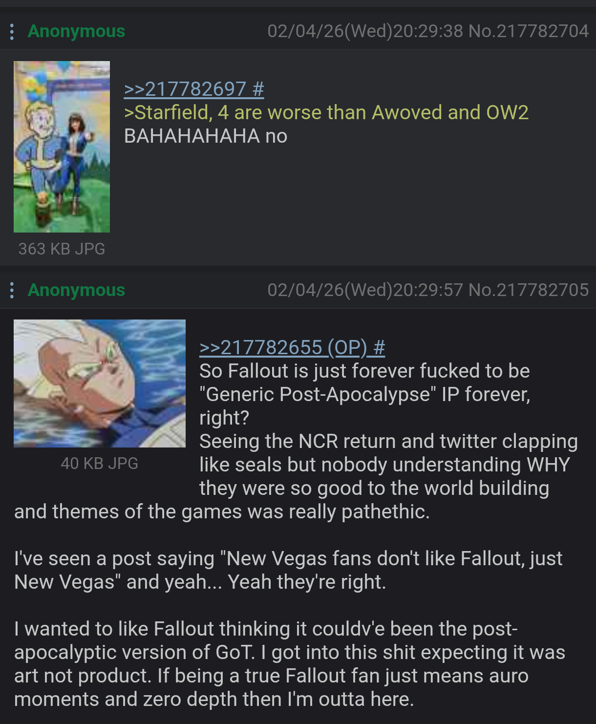 >>556525574Fallout has been a dead franchise since 2015. It ended with Lonesome Road.