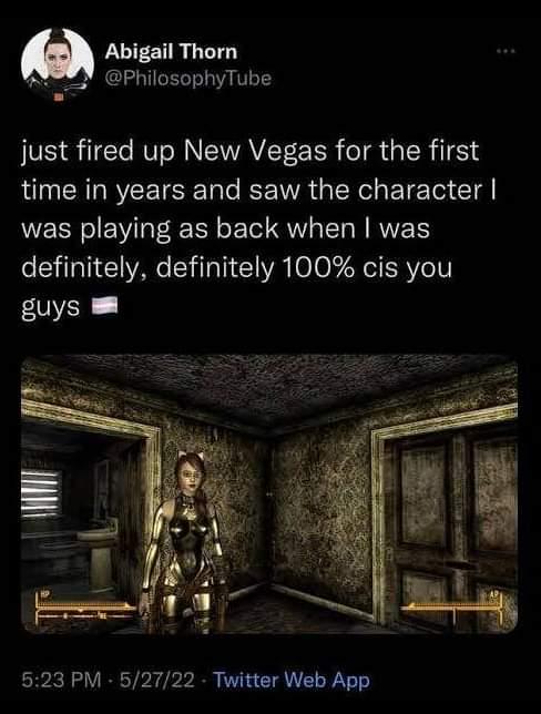 >>556543129Fallout fans are either trannies, gay, or gay trannies.