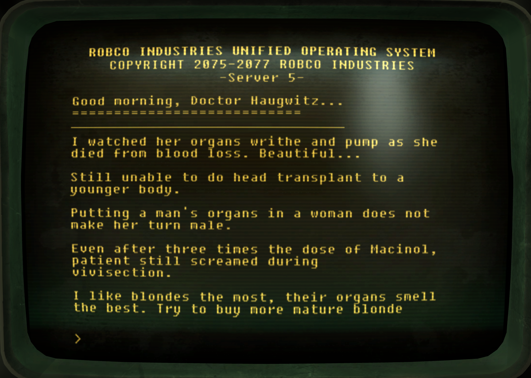 I'm going to RP as a fat gay bisexual nigger in Fallout 4. Playing as a woman felt weird. So I wonder if this will feel extra weird.