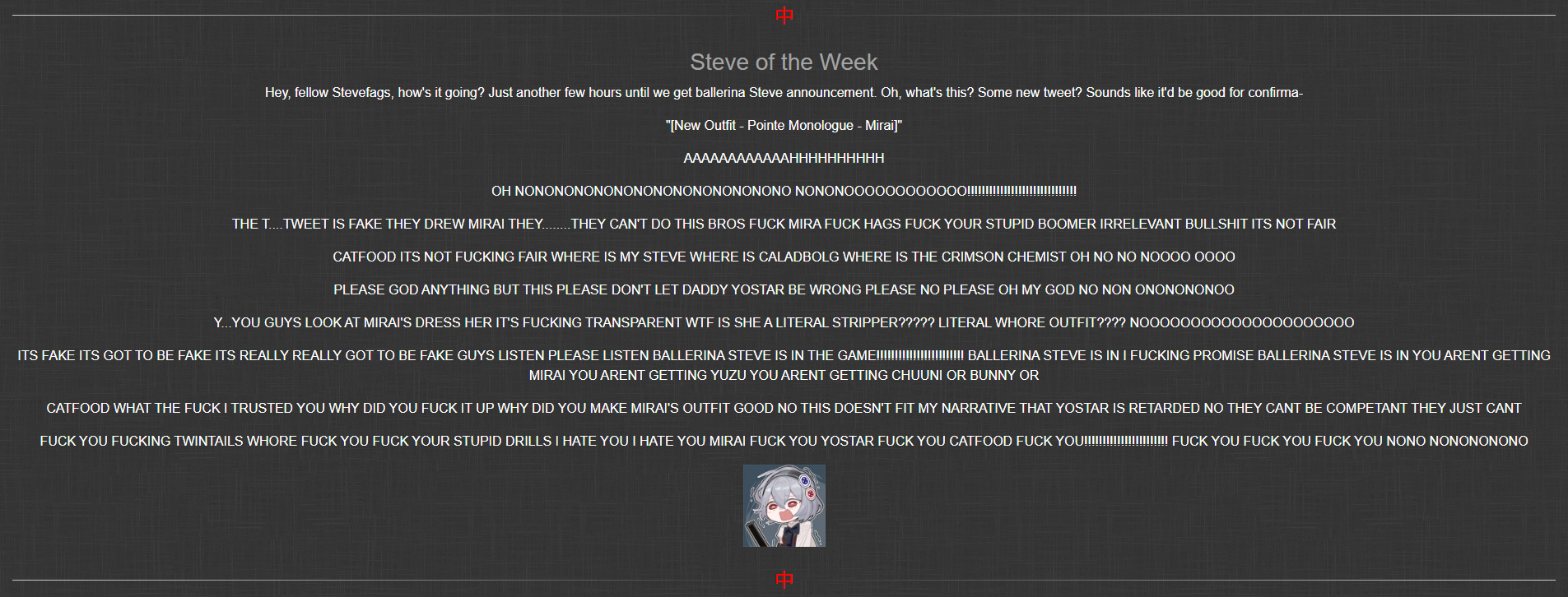 >>556438967>be yuzu main>be proud f2p>peak of yuzu's popularity on mjg arrives >at the same time new yuzu outfits are released >cave in and buy>become steve main>peak of steve's popularity arrives>new steve outfits are releasedI smell a conspiracy, shan't buy pngs. Never again