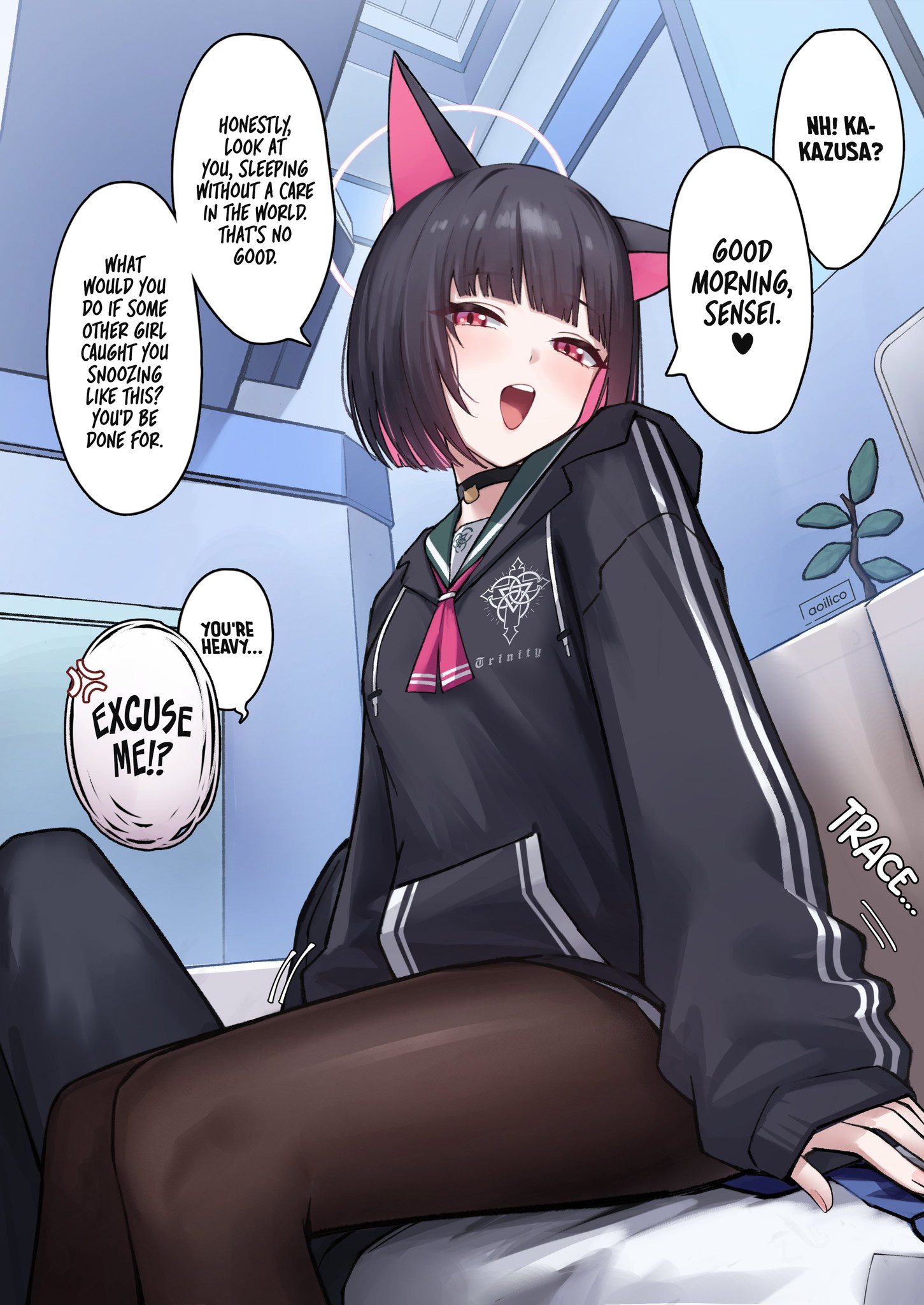 Kikyou raped me for smelling like Kazusa then Kazusa raped me for smelling like Kikyou. I hate it here in Kivotos.