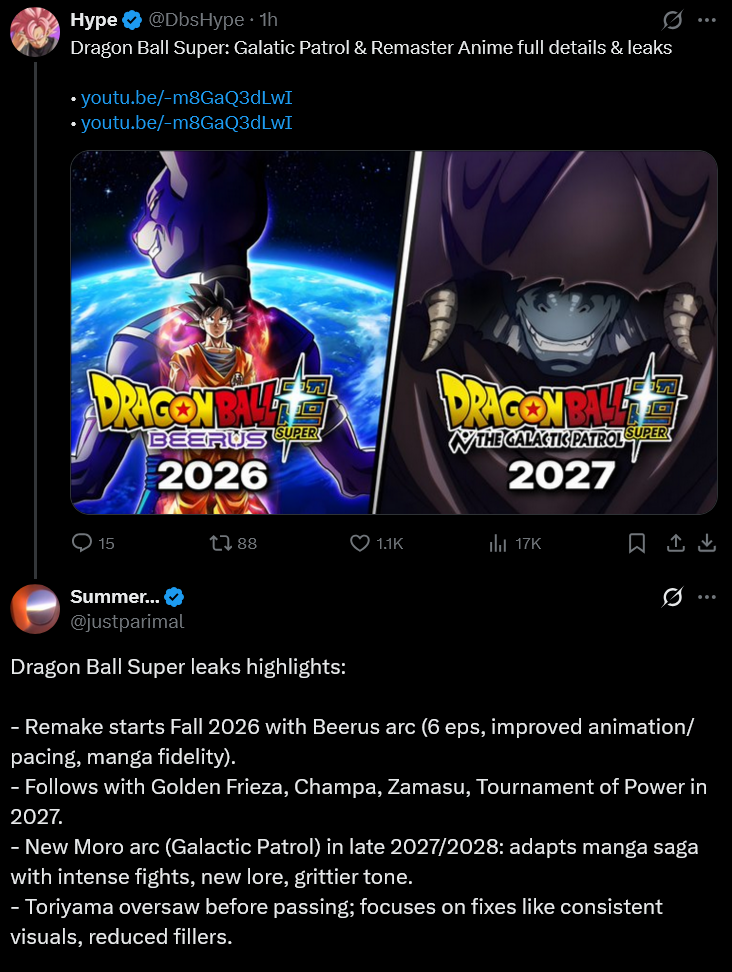 Water Vegeta's return edition!Two anime series, Dragon Ball Super: BEERUS and Dragon Ball Super: Galactic Patrol, have been announcedAge 1000 game project announcedXenoverse 2's Future Saga Ch. 3 is outFighterZ new balance update is outGekishin Squadra is out. 17 is currently the free weekly character.AGE 1000 TEASERhttps://youtu.be/pLscMRafsLISPARKING ZERO NEW DLC TEASERhttps://youtu.be/SZhl5-ag0tAGEKISHIN SQUADRA BARDOCKhttps://youtu.be/vgqyxN0Kce4KAKAROT DAIMA PT.2 LAUNCH TRAILERhttps://youtu.be/ZY6OAh_7KYwXV2 FUTURE SAGA CH.3 LAUNCH TRAILERhttp://youtu.be/FtxSegpS7TIFIGHTERZ SS4 DAIMA GOKUhttp://youtu.be/fVtdkNqbiKE?t=96>Useful links:https://rentry.org/dft79XV2 news:>Future Saga 4 DLC on the way, release date TBASDBH News/Resources:>SDBH has ended...We are all Heroes! RIP 05/09/24>SDBH Database: https://www.carddass.com/dbh/sdbh_mm/cardlist/>Deck Autism: https://rentry.org/sdbhdecklistDBSDV news:>You can have a team of up to 8 characters (7 cards and an avatar)>3 card types: Impact, Rush, and Boost>CAA/TAA have been renamed as Action Skills>If you collect all 7 dragon balls in-game and summon Shenron, you'll pull an guaranteed Super Rare card>Avatars can also be Namekians or Fridges>If you max out your SDBH avatar's level and transfer them over to Superdivers, you can unlock default SDBH avatar skins for your Superdivers avatar>HOW TO FIND YOUR XENOVERSE 2 SAVE ON STEAM guide:steam > userdata > [your steam id] > 323470 > remote > DBXV21DBXV2.sav should be there, which is your savefileIf you wish to delete it to try reimporting or for other reasons, disable steamcloud on both Xenoverse 1 and 2 first.Kakarot:>Daima DLC Part 2 will release on January 15thDB The Breakers:>Season 9 launched with DBZ Broly Raider>XV Booru: Upload drawfaggotry herehttp://xenoverse.booru.org/Rest in Peace, Akira Toriyama (3/1/2024)Thank youLAST TIME ON /dbg/: >>555966031