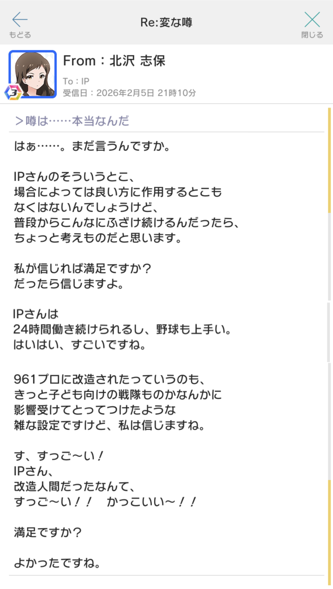 iM@S NEWS ARCHIVE- Archive of >>556231174: archive.is/m2QRy>Gakuen- GK Misuzu's birthday 2026: >>556372042 >>556372138 >>556372239- GK Misuzu's Birthday Mini-Live 2026 setlist: >>556371042- GK Misuzu's birthday tributes 2026: >>556373985- GK Hiro garage kit figure (Feb 5th): >>556352487>Million Live- TD Downtown Girls Premium Pickup SR Gacha Update (Feb 5th): >>556334656 >>556334713 >>556337530 >>556337697- TD Downtown Girls Premium Pickup SR Gacha Models (Feb 5th): >>556339103- TD Upcoming Main Commu 162 "Fuwarhythm": >>556357495- TD Upcoming "SONG FOR YOU! VOL.71" Gacha: >>556357495- ML SEASONAL SNAPSHOT May 2026 Merch (Feb 5th to 22nd): >>556346387- ML Momoko's pub mirror: >>556323442- Buy more nui clothes: >>556326258- Mirai's VA is a bad influence: >>556353728>ALLSTARS- Chihaya Solo Live "Oath ONE" commentary streams on Feb 8th and Feb 14th, 12PM JST: >>556352867- Look at the sheer fucking size of this Haruka: >>556370107