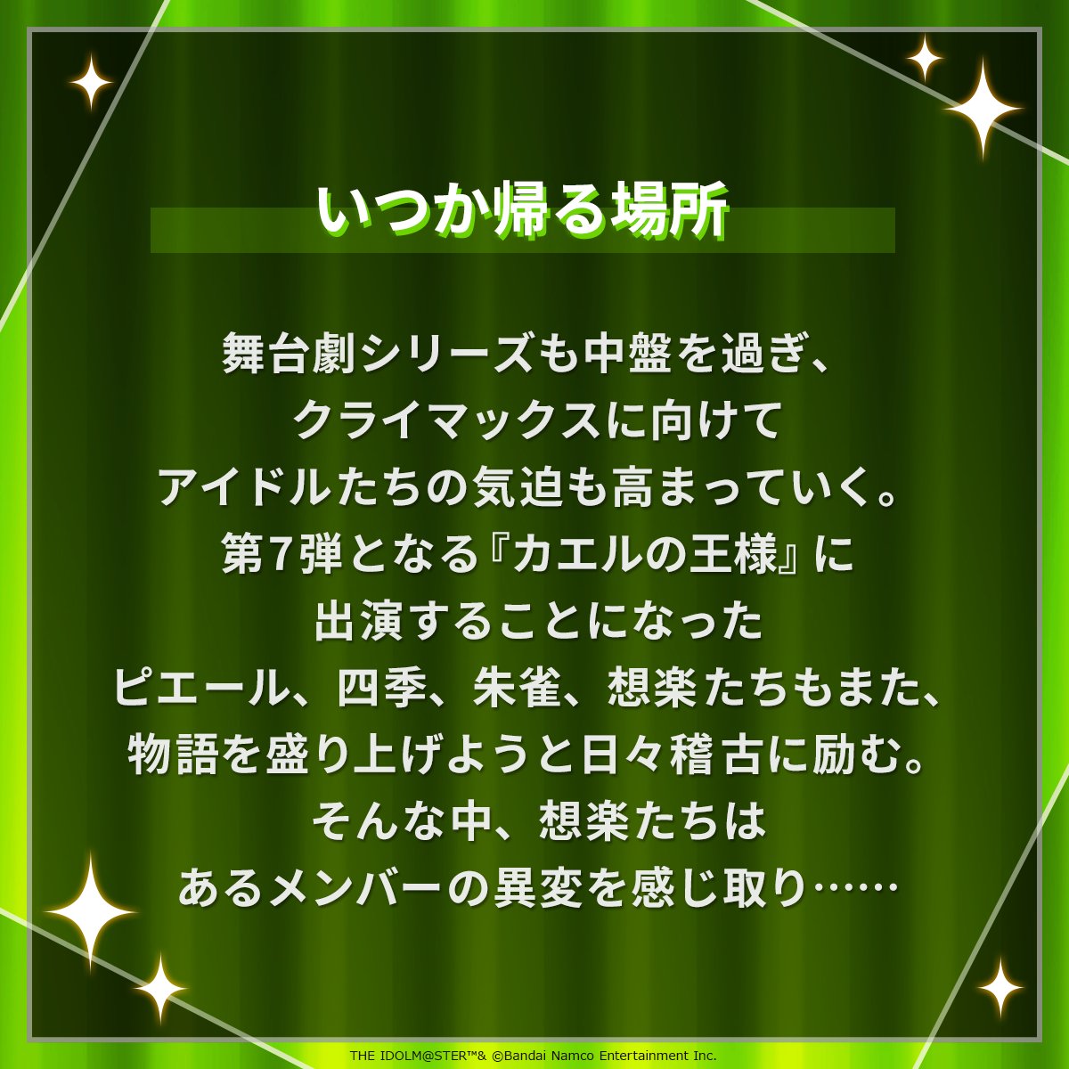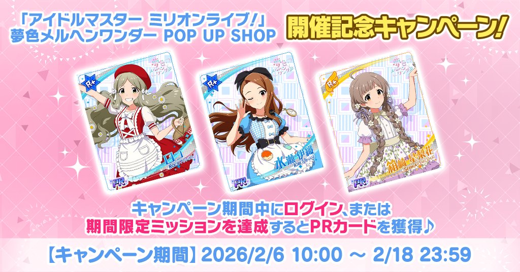 TOMORROW:Feb 7th, 9PM JST: SideM PASSIONABLE READING SHOW "Paranormal Incident ~Conflicting Justice~" DAY 1 free on Asobistage: >>555335812Feb 7th, 9PM JST: VL Cosmo plays MyVoiceZoo: youtu.be/70_Mt34v95oFeb 7th: Million Live Anime Special Release Event in Thailand: >>554026771 >>554026846 >>554028284 >>556372179Feb 7th: Million Live WakachikoP business card exchange at ANIMONIUM 2026 in Thailand: >>555439324Feb 7th: Gakuen Ichiban Kuji part 4: >>538619060 >>548910342 >>553786174 >>553889501Feb 7th to Feb 15th: SideM Teddy's Collection POP UP STORE in Kobe Marui: >>545386383Feb 7th to Mar 8th: CINDERELLA GIRLS fes. Once Upon a St@rs STARLIGHT ALLIANCE Bakudanyaki Honpo collab: >>554877590