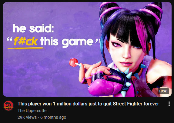 >>556487087>And then you have the biggest morons in the planet arguing that Capcom isn't trying hard with SF6 precisely BECAUSE it's a "huge success"This shit pisses me off to no end.