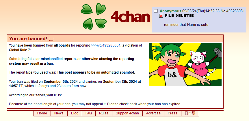 >no they banned me on accident not because I'm an insufferable cunt that can't follow simple rulescoeposting 101