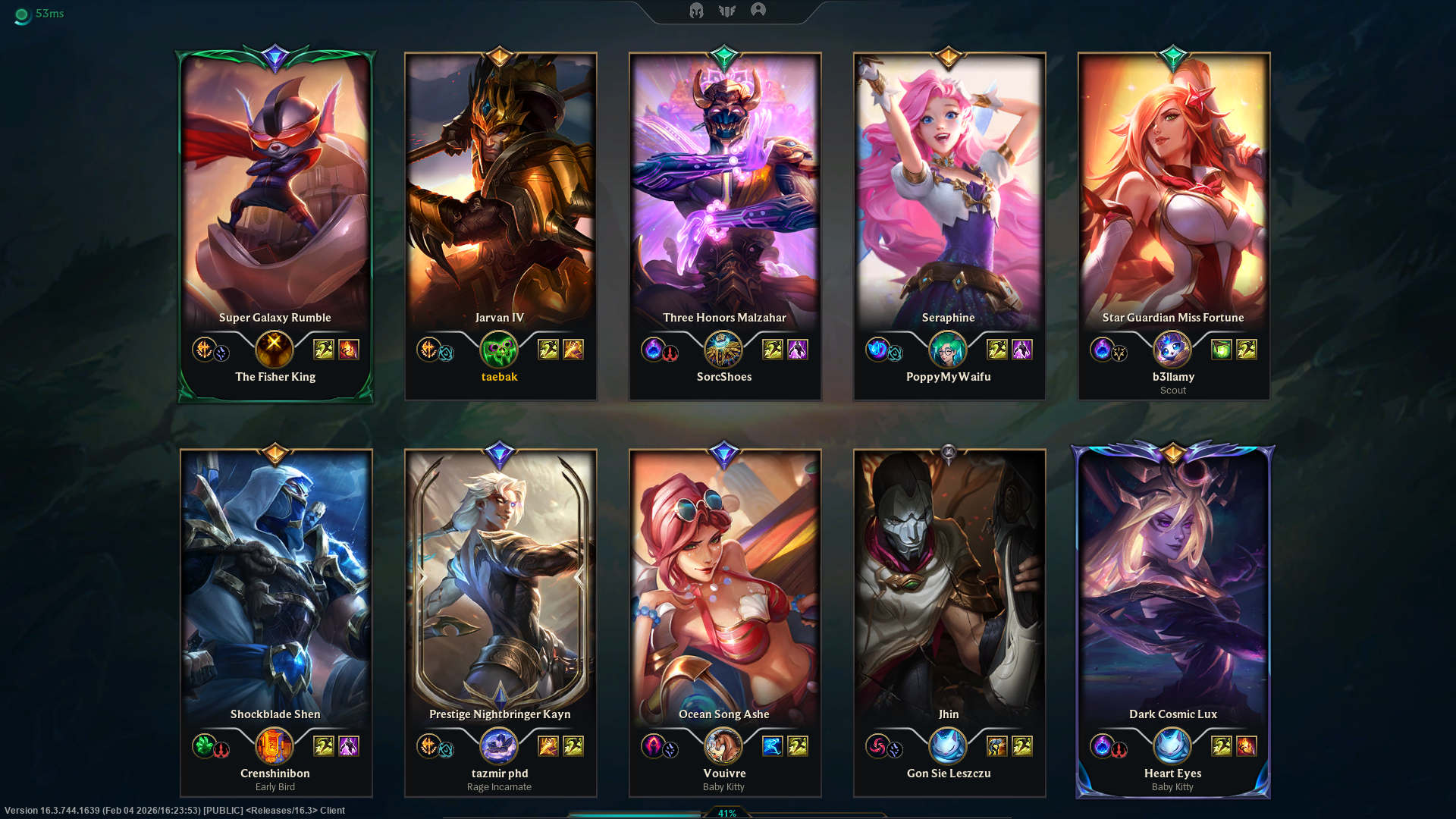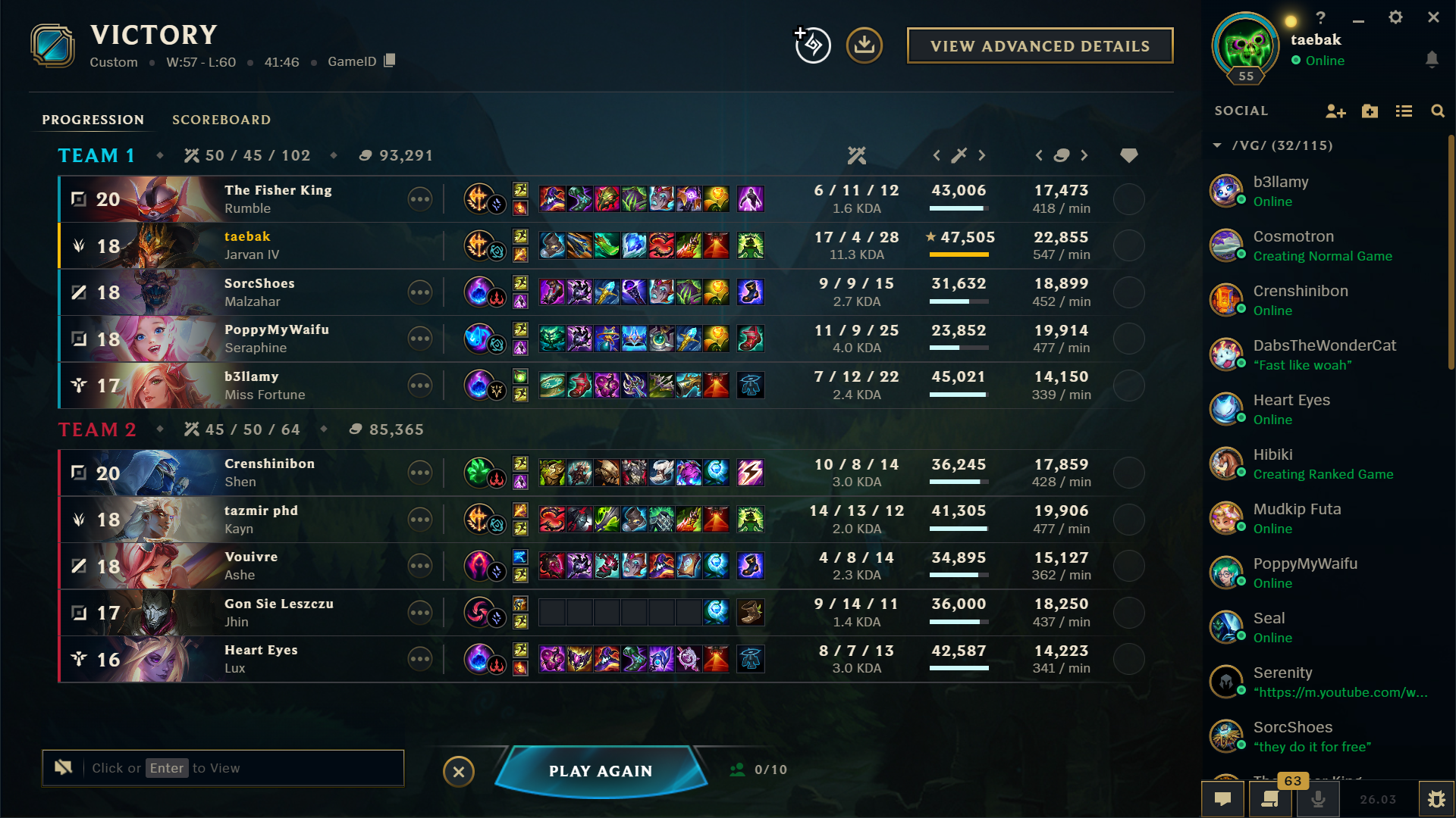 Play Karma editionPrevious: >>556323708>Official Wiki, Patch Notes and PBEhttps://wiki.leagueoflegends.com/en-us/>Builds/Account Statshttps://u.gg/https://www.op.gg/https://lolalytics.com/>Model Viewerhttps://www.modelviewer.lol/lolg/ OP pastebinhttps://pastebin.com/8xZvBfnZ