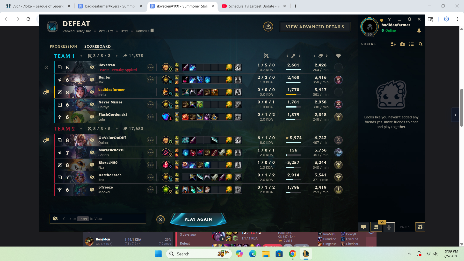 >>556474164i had this 2 duos who were absolute slimy bastards, one of them was a twitch streamer so he basically made his friend do all the shit talking for him so that his twitch acc was safe, they were also acting like they were carrying but were infact just tower hugging the entire time while i was 1v9ing as mel, it was pathetic, these premades are worse than coop vs ai bots