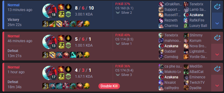 I won't be rationalising my bad choices. I should've gone antiheal. I should've backed off when they ganked. I did first time. But. I'm. Tired. Of so much.
