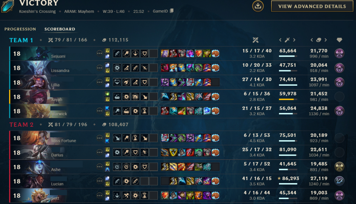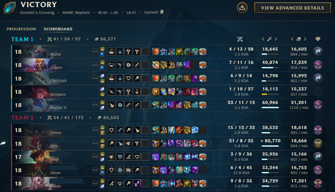 playing with these premade groups on meyhams has been one of the worst gaming experience everliterally always with 9 premades that insta lock me in every game, i can't type or anything either because i will get all 4 adds postgame to talk shit to me againtell me why they just let darius and sett just walk in past them and insta 1 shot me 12 times in a row throughout the entire gametheir lissandra also only followed their premades and w'd to disengage and freeze enemy sett and darius if their friends were in troublethey only started playing around me the last 3 minutes because i was full build and could kill the darius and sett running at me and then sweep out their backlineit is frustrating