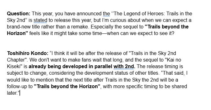 >Trails in the Sky 2nd Chapter is confirmed 2026.