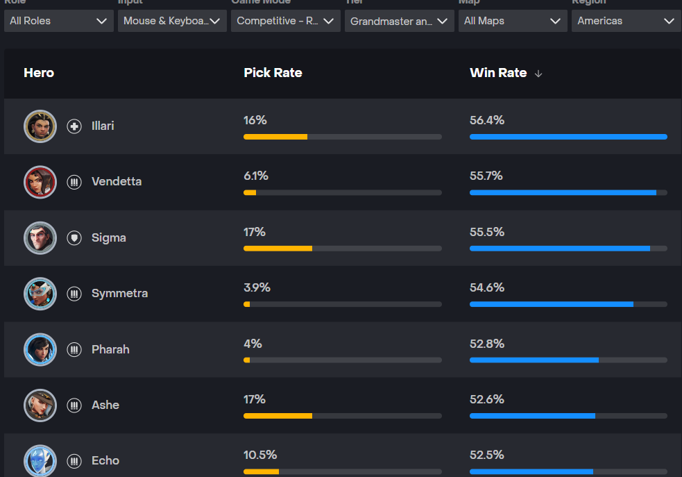 https://overwatch.blizzard.com/en-us/rates/?input=PC&map=all-maps&region=Americas&role=All&rq=2&tier=All