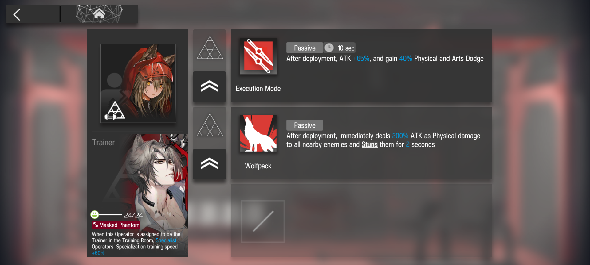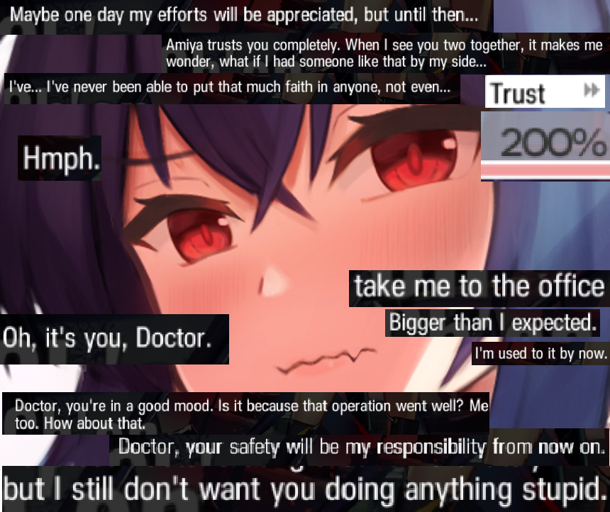 following up on this >>556430036 which individual 4*'s would people pick to add to the 3* team to clear more of the story? Rules are 3* + Amiya only (locked to currently unlocked forms), and add one 4* to the team each chapter completed after chapter 5.I feel like Ethan is a shoe-in, there are no 3* ambushers, ambushers are great force multipliers and do some okay AoE damage too which will be one of the biggest things the 3* team struggles with.Perfurmer feels like a good choice, she's always been strong and adding a third medic would probably be very helpful.Click feels like a lock at some point, very good arts DPS plus some crowd control. Very much things that will be lacking. Pudding, too, for similar reasons.Cuora and Gummy are really good, but, I feel like the 3* defenders are not bad enough to be worth immediately bringing them onto the team. Eventually, though. Same thing with Myrtle, she's very good, but I feel like prioritizing damage output is more important at least at first.Jaye is tempting. There are no fast redeploys on the 3* team, and I always joked Jaye is a secret 6*. Fucker hits like a freight train and can live through way more than he should be able to.