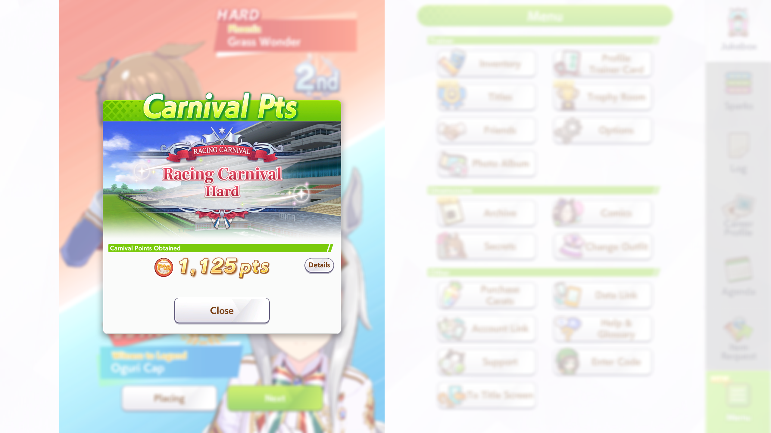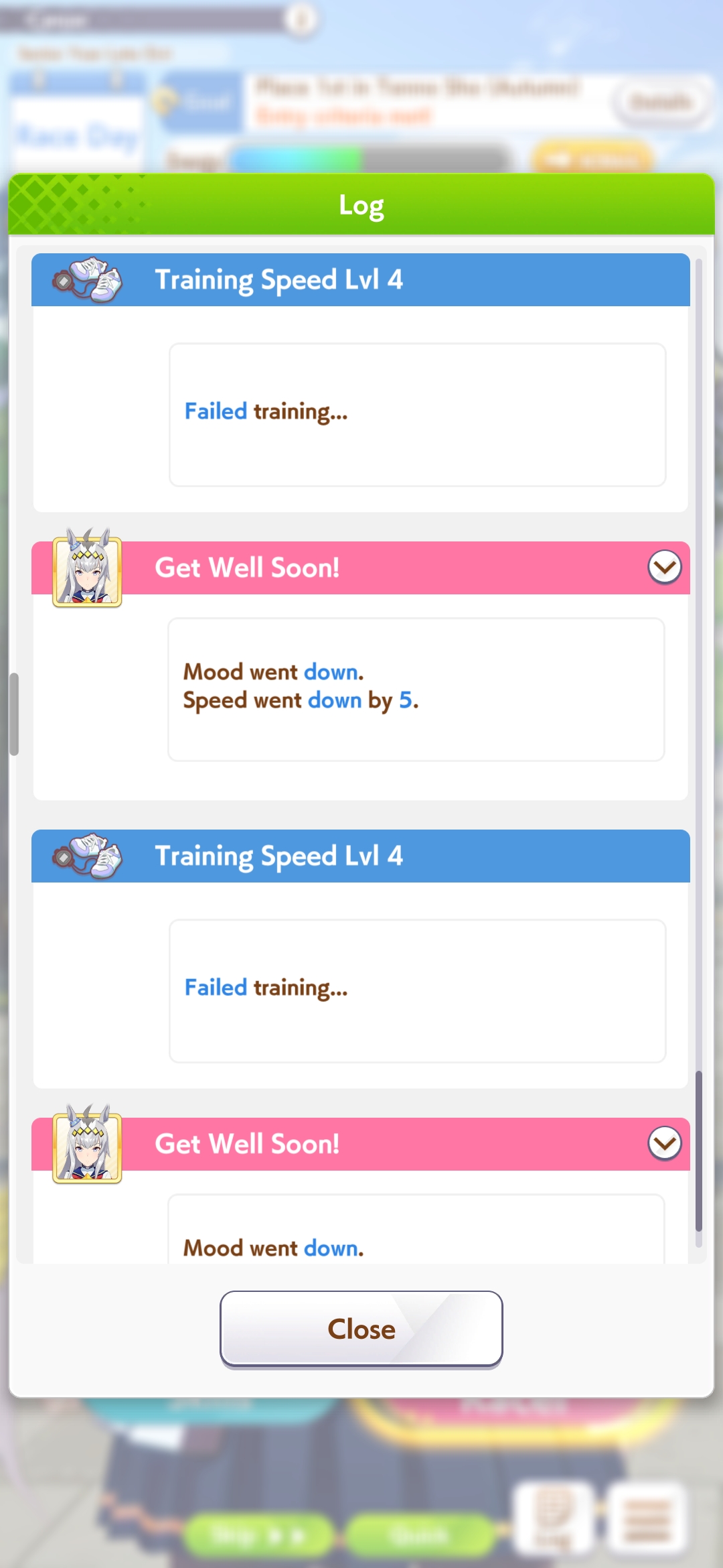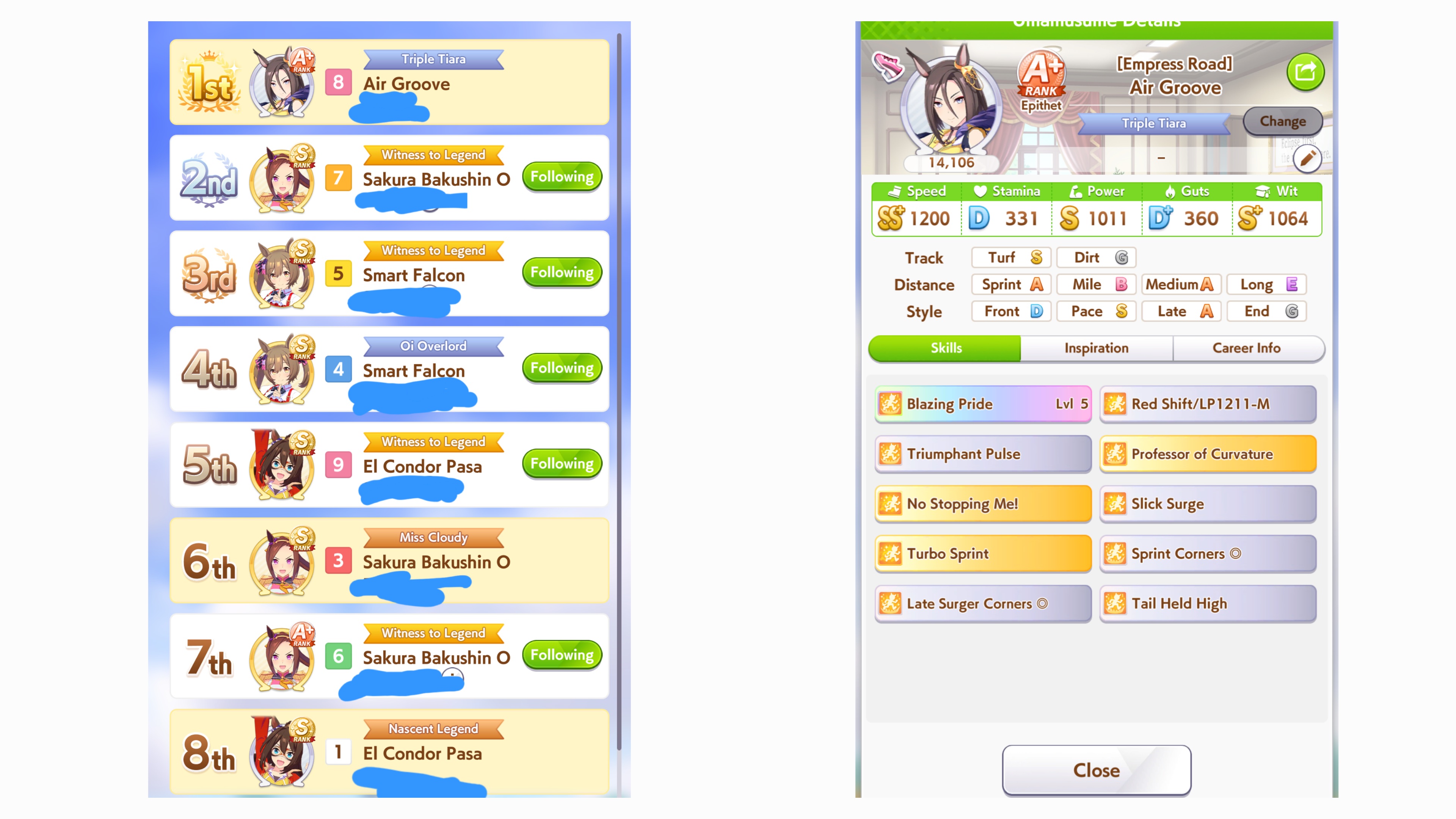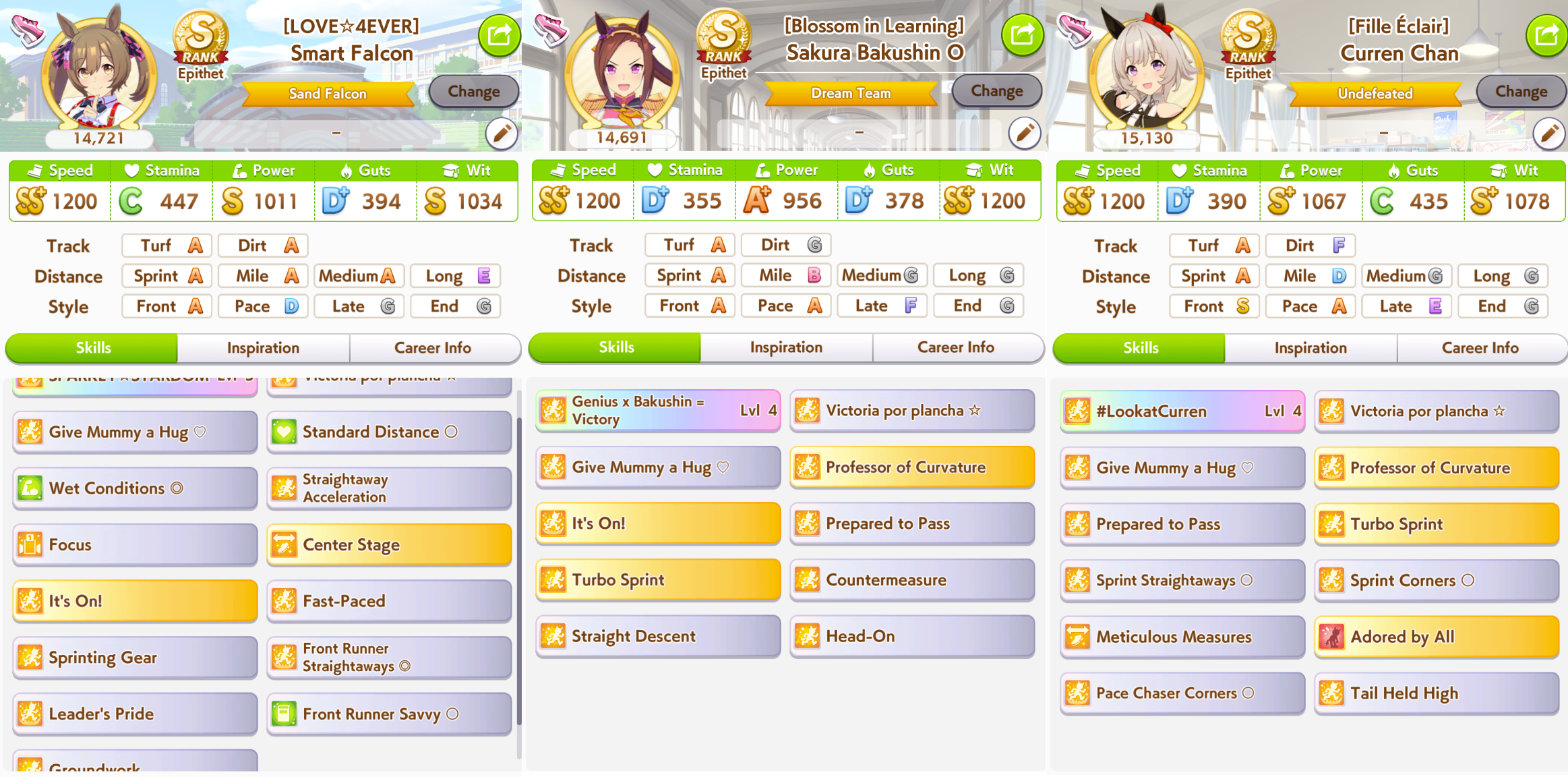 ok I'm not getting better luck than this. First time ever capping two stats, and definitely when a third is over 1k. Thank FUCK the sprint sparks proc'd senior inspo, but of course my skills low-rolled>no head on>no straight descent>no pace chaser cornersoh well. I think this will easily win me B finals.