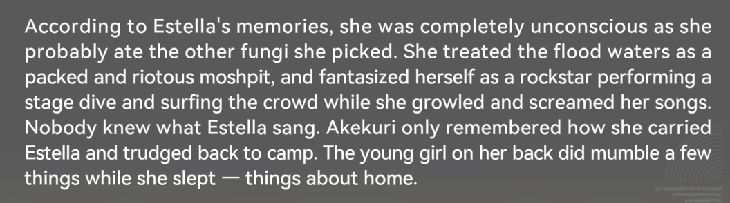 >>556450545estella's profile is about her eating mushrooms during a camp with z7 and tripping balls
