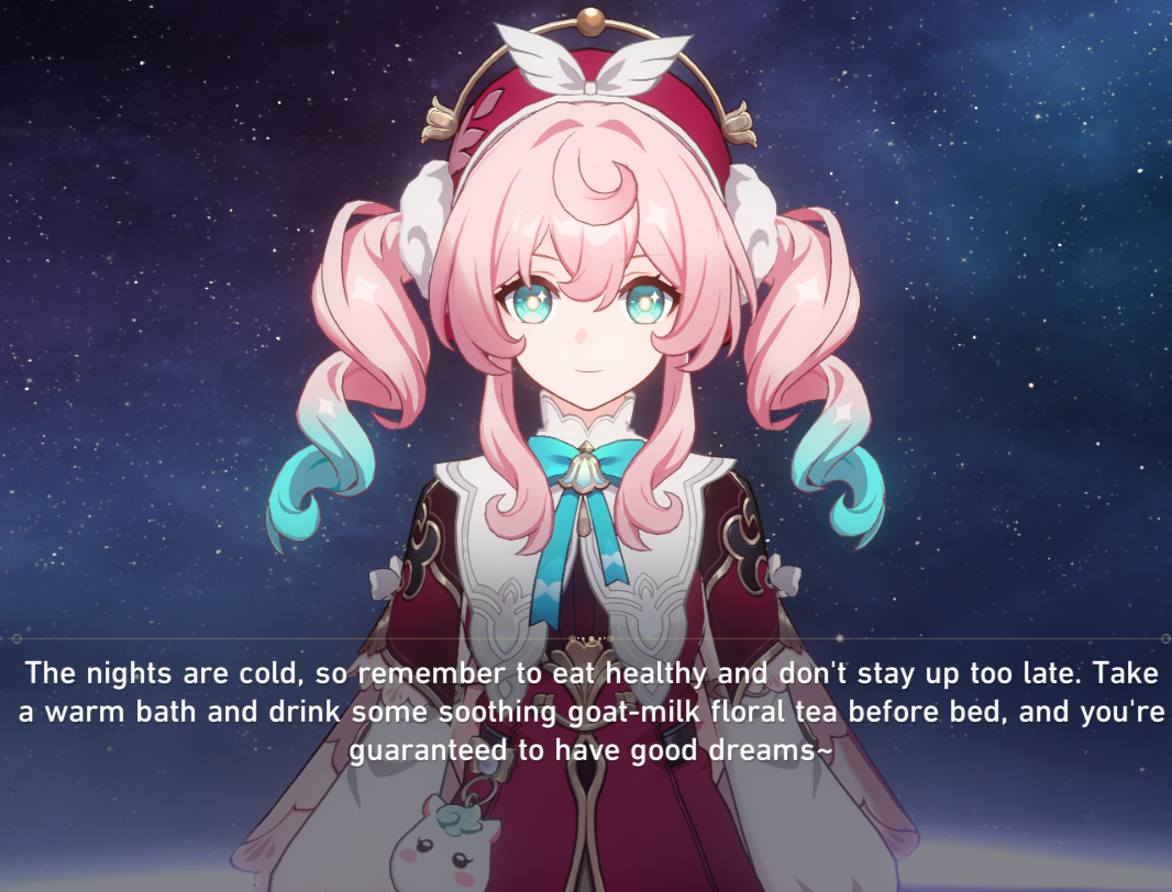 I figured I'd try your game out for a bit after getting 50/50 raped in ZZZ and wanting to wait a bit before playing the update.Its aight, kind of corny, models are a bit meh, gameplay is very simple, but its got a solid charm. I like Herta, March, Silver Wolf and Kafka the most so far.Biggest complaint is that I feel like the game's calling me a fag. I tried to get the brown haired fox and got church boy instead, then hoped for Clara or Himiko from the starter banner and got Welt.Guess I'll just enjoy the game without rolling until Sparkle or Silver Wolf are available, since those two are the main reason I started.