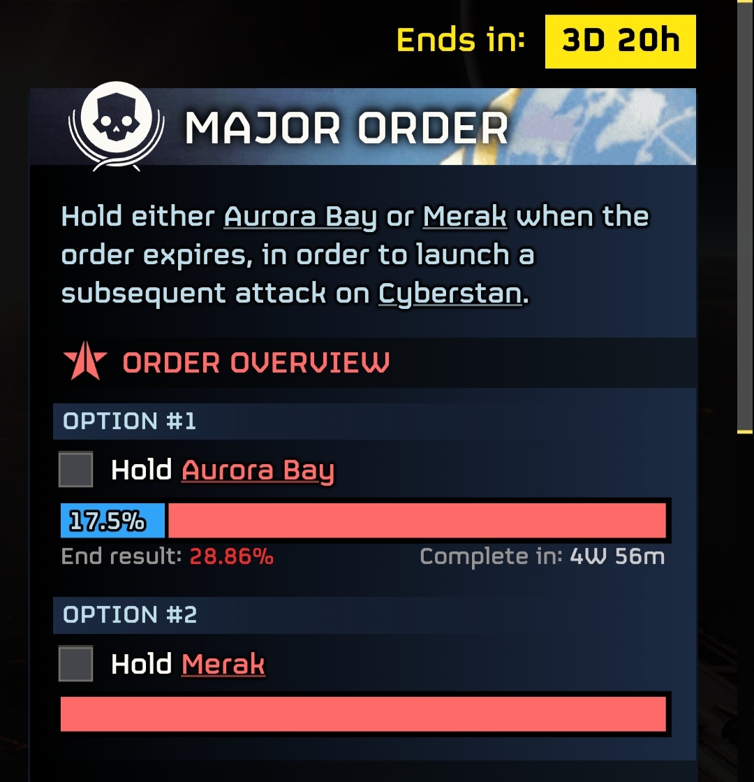 >>556480078You were liberating Aurora Bay too quickly, so fuck you, you're only allowed to liberate Merak in the last minutes of the MO
