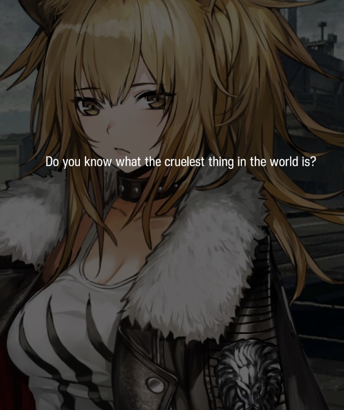>>556469907>Lowlight goes scorched earth on all arknights lore for a game that won't survive to 2027Grimly comical. Comically grim.