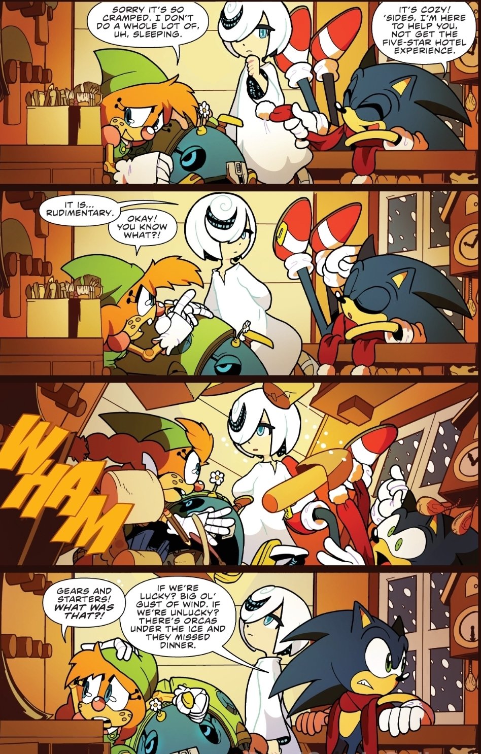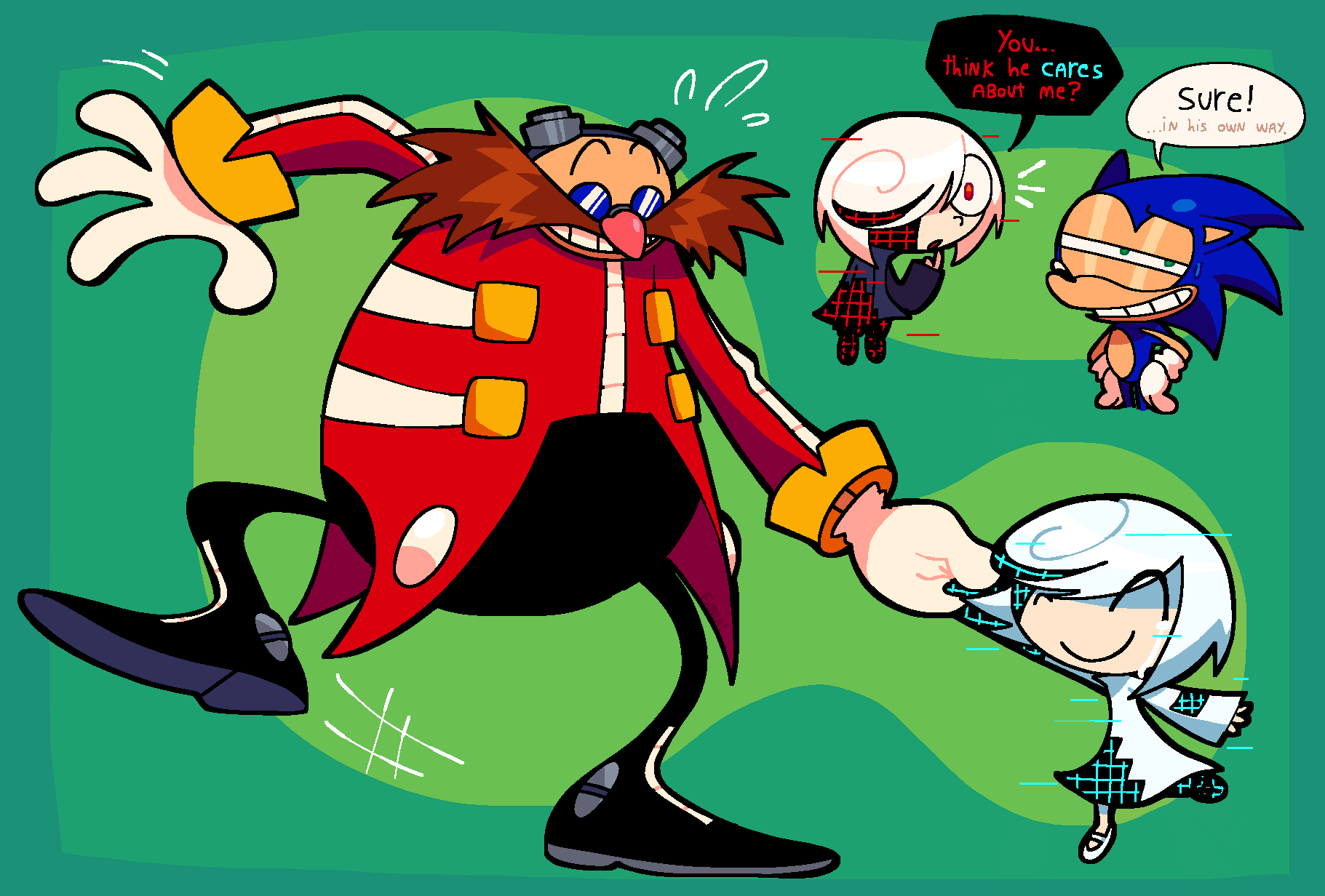 So Evan gave Sonic a phobia of whales because she thought it'd be "funny" but apparently forgot that there is several stages where Sonic happily interacts with whales in games. What a....whale of a misinterpretation.