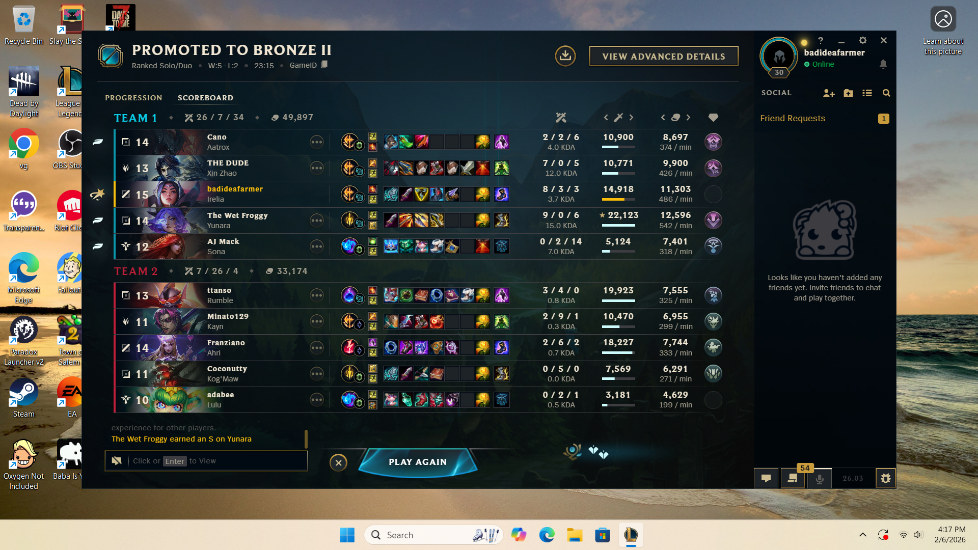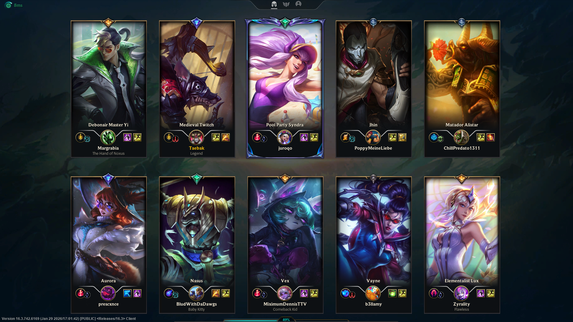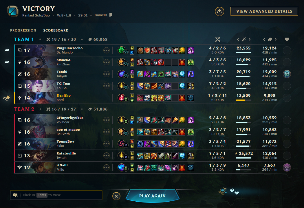 Play Karma editionPrevious: >>556406239>Official Wiki, Patch Notes and PBEhttps://wiki.leagueoflegends.com/en-us/>Builds/Account Statshttps://u.gg/https://www.op.gg/https://lolalytics.com/>Model Viewerhttps://www.modelviewer.lol/lolg/ OP pastebinhttps://pastebin.com/8xZvBfnZ