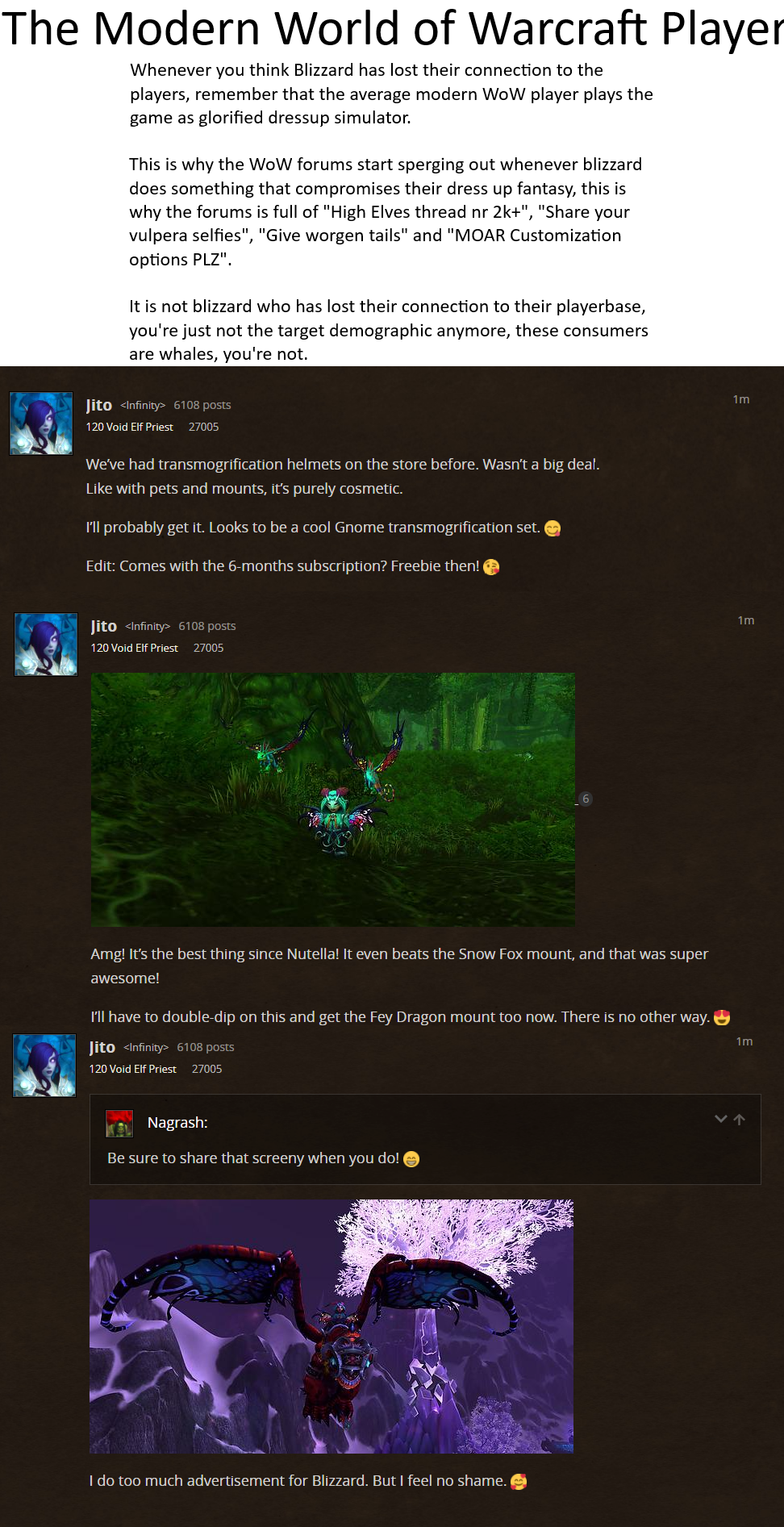 belves ruined WoW, but it's more accurate to say that the urge to make Belves look like High Elves rather than ugly, angry, mana-crack addicts that belong on the Horde ruined the game.