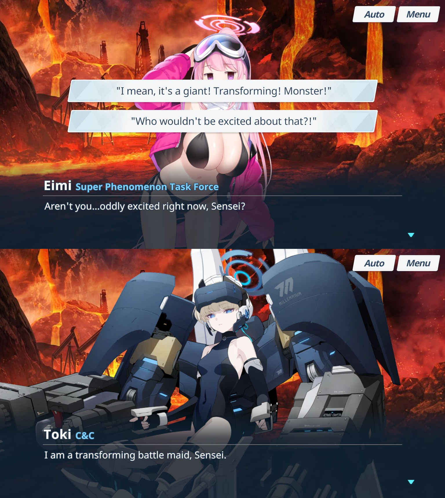 Volume F had the benefit of a mysterious antagonistKuroko wouldn't speak to you and Phrenapates was a brick wall. Obviously things were going to work out, but all the vagueness along with the scale of the threat helped sell that it was a serious situation. Also spooky red sky is better than piss yellow skyWe're having babbies first meaning of life discussions (again) with cute quirky robot girls being stomped by just two millennium clubs and it just doesn't hit the same as needing literally everyone to save the day