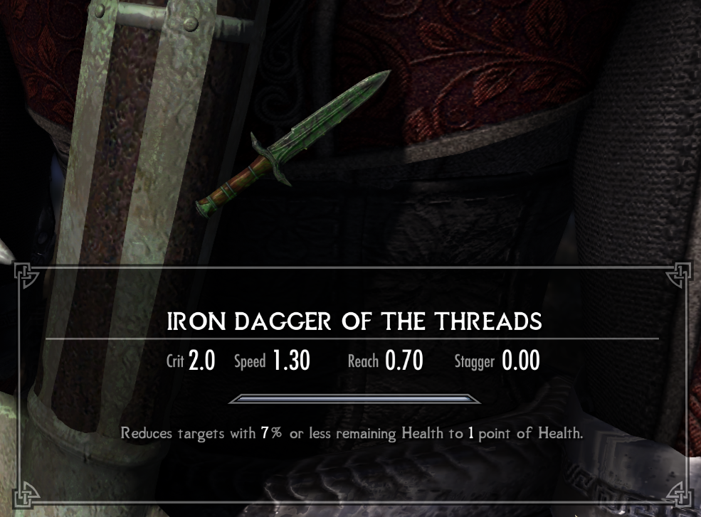 >>556657079You're supposed to pretend you can't just trivialize the entire game by sharpening a dagger really well
