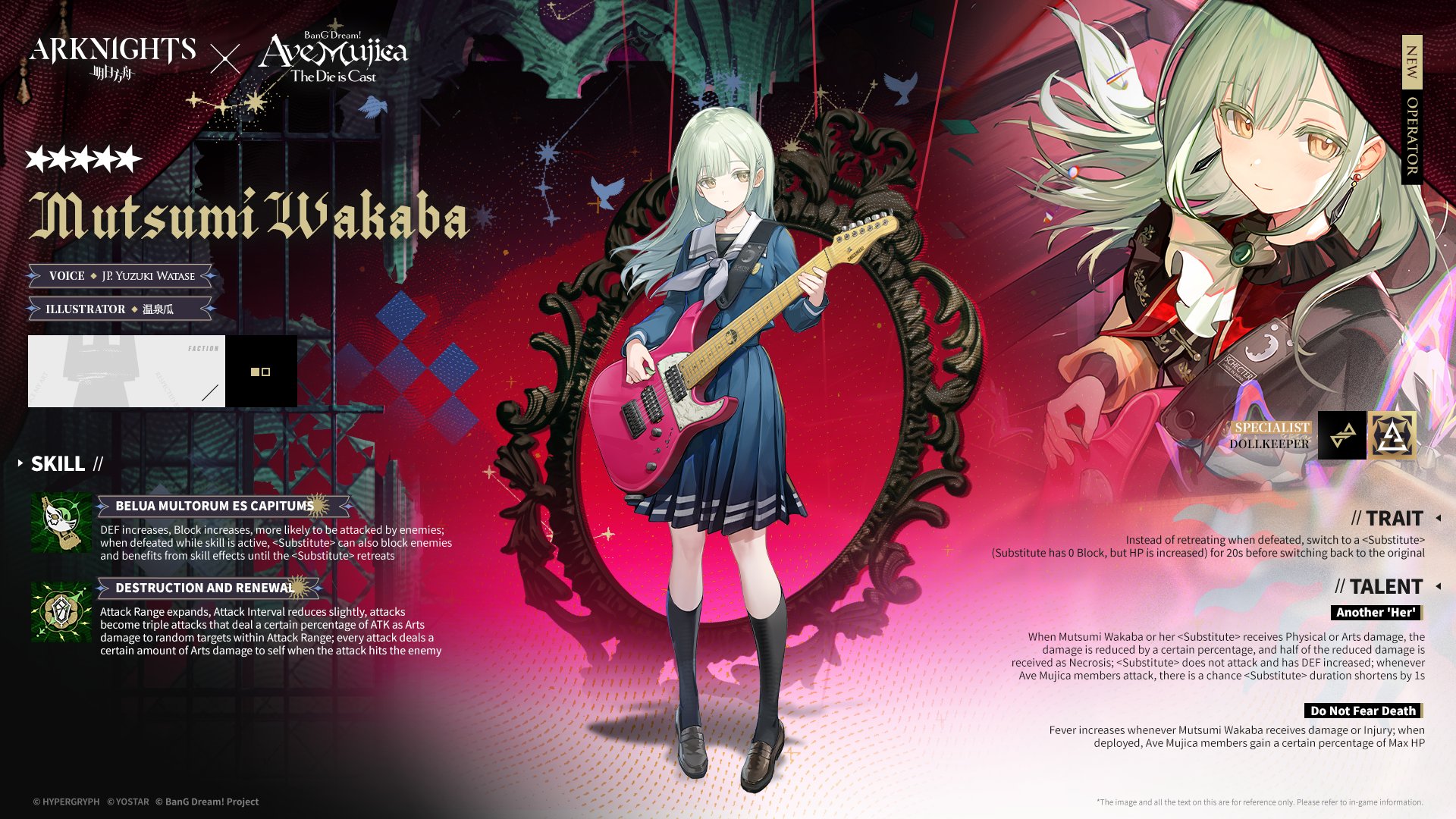 Previous thread: >>556512264>CURRENT, FUTURE GLOBAL/JP/KR CONTENT:[1/30-2/13][Standard]6* Vanguard Vulpisfoglia, 6* Caster Goldenglow (Shop), 5* Caster Tecno, 5* Vanguard Surfer, 5* Defender Firewhistle (Shop)[1/16-2/13][Marthe, Coral Coast & Misaligned Sightseer]Thorns the Lodestar, Ch'en the Holungday, Necrass, May, Pepepipi[2/3-2/17]Duel Channel: Honeydew[2/3]Holographic Combat Matrix[2/10-2/24]AK x BanG Dream! Ave Mujica: Somniloquium Serenum - 5* Guard Nyamu Yuutenji & 5* Specialist Umiri Yahata[2/10-2/24][Cantilena Puppae]6* Guard Sakiko Togawa, 5* Supporter Uika Misumi, 5* Specialist Mutsumi Wakaba[2/10-3/3][Crossover]Sakiko Togawa, Uika Misumi, Mutsumi Wakaba, Nyamu Yuutenji, Umiri Yahata>CURRENT, FUTURE CN CONTENT:[1/29-2/12][Standard]6* Caster Blaze the Igniting Spark, 6* Vanguard Ines (Shop), 5* Medic Paprika, 5* Medic Nowell, 5* Specialist Spuria (Shop)[1/27-2/10]Such is the Joy of Our Reunion Rerun - Xingzhu & Wan Qing skin[2/3-3/3]Reselling a bunch of skins[2/10-3/3]First of A Thousand Autumns - 5* Sniper Ju[2/10-2/24][Ashes to Ashes, Ages on Ages]6* Specialist Wand, 6* Guard Ch'en the Dawnstreak, 5* Medic Taraxacum[2/10-3/10][0011]Dusk, Ling, Yu, Philae, Surfer[2/14-2/28][Unveiling of Devotion]Breeze, Beanstalk[2/14-2/28][Unveiling of Devotion Re-Edition]Nightmare, Hibiscus the Purifier; Harmonie, Arene>/akg/ website:akgcc.github.io>AK EN Database:puppiizsunniiz.github.io/AN-EN-Tags/akhrchars.html>More valuable resources:rentry.org/akg_resources>/akg/ merch guiderentry.co/akg_merch