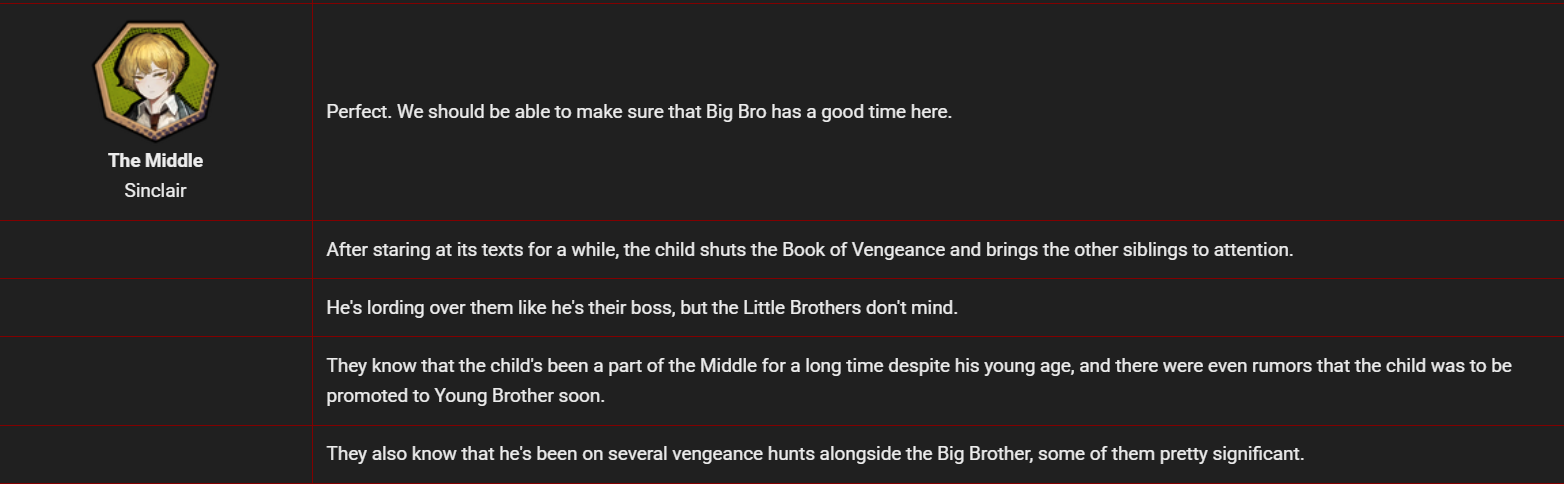 >>556594325>>556594634Despite everything I'm proud of ni_gger you can tell he's grown a lot over the course of Limbus's development, just compare what he dumped out in Canto V to what he cooked in Canto IX