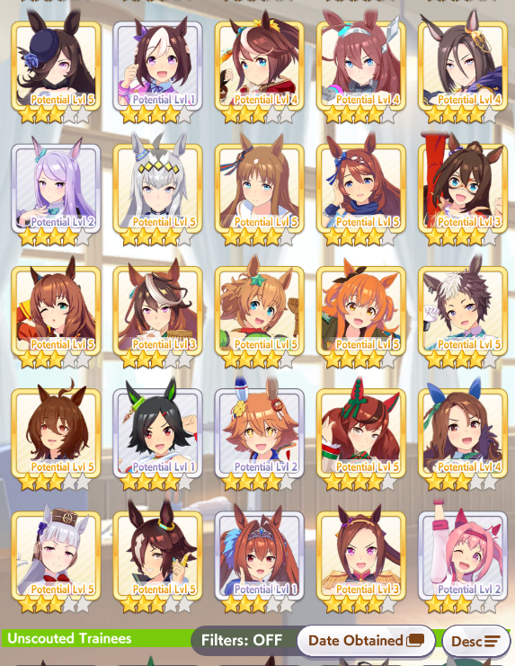 I just found out about sorting your umas by date obtained to check which 3* you got first and holy shit I knew that I was lucky with my early pulls but I didn't realise I got three 3* Umas before even getting a bunch of 2* Umas.