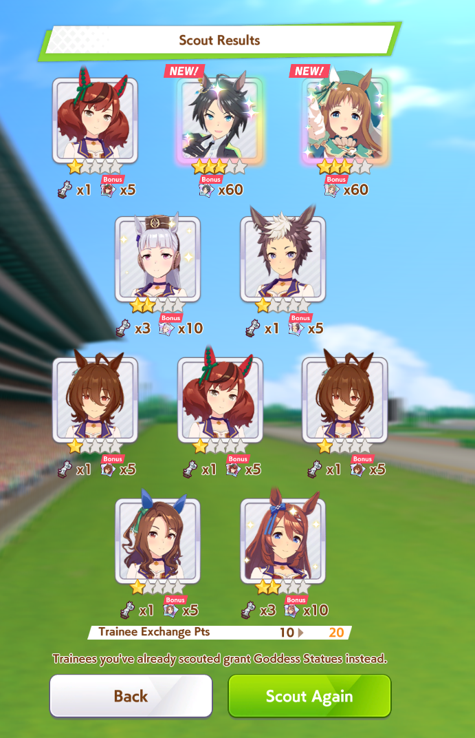Current Rate Up Trainee: New Year's Scout (3*), New Year T.M. Opera O (3*), New Year Haru Urara (3*)