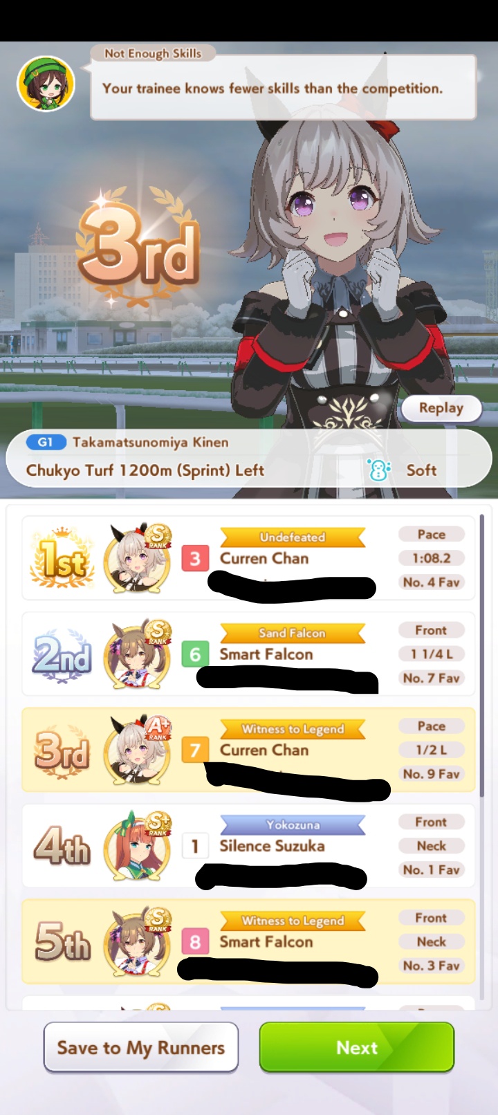 Sometimes I really fucking HATE this game. What a waste of Fast Learner. KSB, Teio, and Neicha all collectively fucked off.