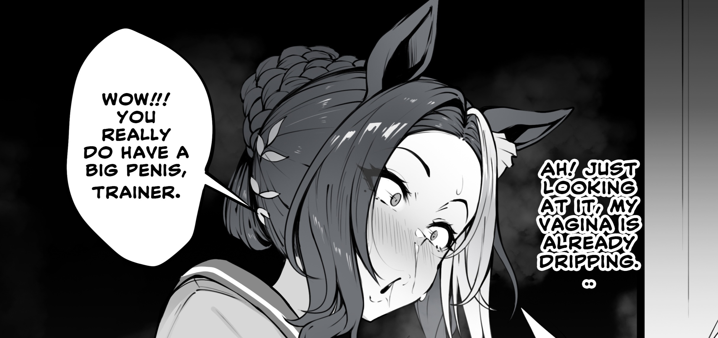 It's like, she knows this is pure degeneracy but the power of her BAKUSHIN training made her sweat taste delicious and is feeling an unexplainable BAKUSHIN on her sideboob so she won't let you stop