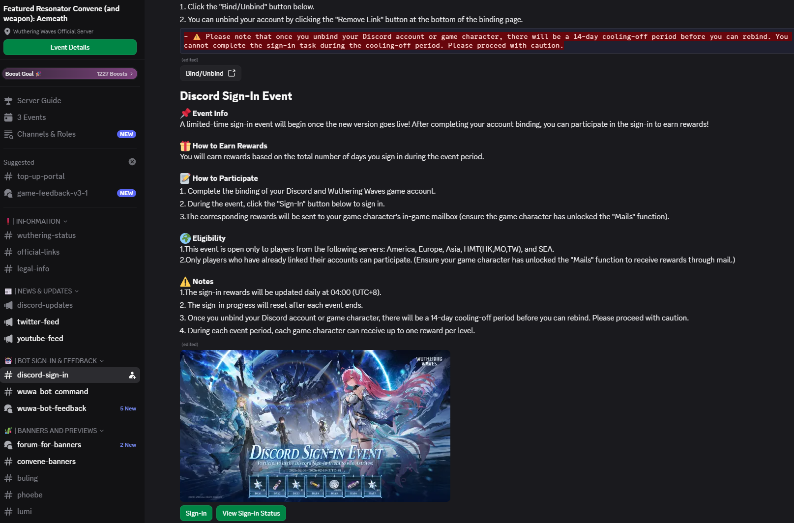 Download (Android/iOS/EGS/Windows)https://wutheringwaves.kurogames.com/en/#mainhttps://store.steampowered.com/app/3513350/Wuthering_Waves/>Wuthering Waves Cinematic Short | Salvationhttps://youtu.be/TnXzZxKmGYk>Wuthering Waves Story Cinematics | Originhttps://youtu.be/DXRqVumTFh4>Wuthering Waves | Resonator Showcase | Aemeath — GRADUATION SHOWhttps://youtu.be/H8gGJgMvr9w>Wuthering Waves Resonator Combat Showcase | Aemeathhttps://youtu.be/psq5Izh9GHM>Wuthering Waves Version 3.1 Official Trailer | For You Who Walk in Snowhttps://youtu.be/6lpiSBvawB0>Map:https://wuthering-waves-map.appsample.com/>Convene Trackerhttps://wuwatracker.com>EventsWHEN IN DOUBT, CHECK: https://wuwatracker.com/timeline[Peaks of Prestige: Rekindled Duel Echo Combat Event][05 Feb -17 Mar][Startorch For You] [05 Feb -17 Mar][TERM-X: Outreach Exploration Event][05 Feb -17 Mar][Full Throttle! Bolt & Blitz! Leisure Event][06 Feb -17 Mar][Where Stars Cascade Down: Limited Time Event] [14 Feb -18 Mar]>Timeline, Rewards and Media Contentshttps://rentry.org/wuwavgv2>Emoteshttps://drive.google.com/drive/folders/1GY6YgPhhOsxN2oW0AbIywdO9Z1_OFe6Khttps://files.catbox.moe/49buge.zip>/wuwa/ Friends Listhttps://docs.google.com/spreadsheets/d/1MzulbsusjOWpaFg6o6kk3TvCWfFYi6EF7NyJXqIazGo>NEWS/EVENTS (and patch notes)https://wutheringwaves.kurogames.com/en/main/news/detail/3941https://wutheringwaves.kurogames.com/en/main/news/detail/3920Previous: >>556536443
