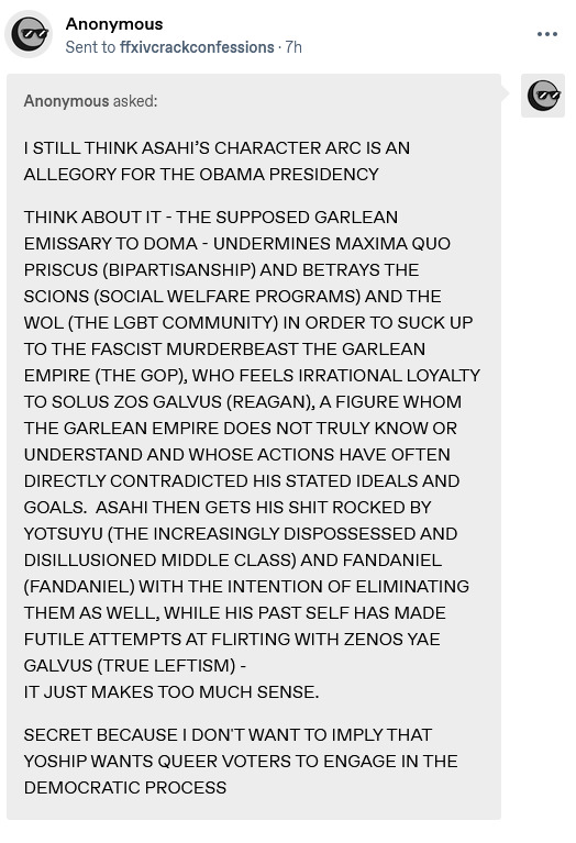 >>5565682963/4 modern legend1/4 controlled chaosOC in Space rewards is such giga ass. Imagine being a retarded console player and running around the map for 100+ min for 1.5k gil of 'MEGA RARE' rewards.I genuinely advocate for violence against the weebdevs. Yoshida needs the shit slapped out of him for shit like this and he needs some sense slapped into his old, washed up head.