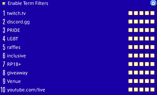 >>556574938you should remove the first letter because the filter is capitalization sensitiveso for example Venue is filtered but venue isn't
