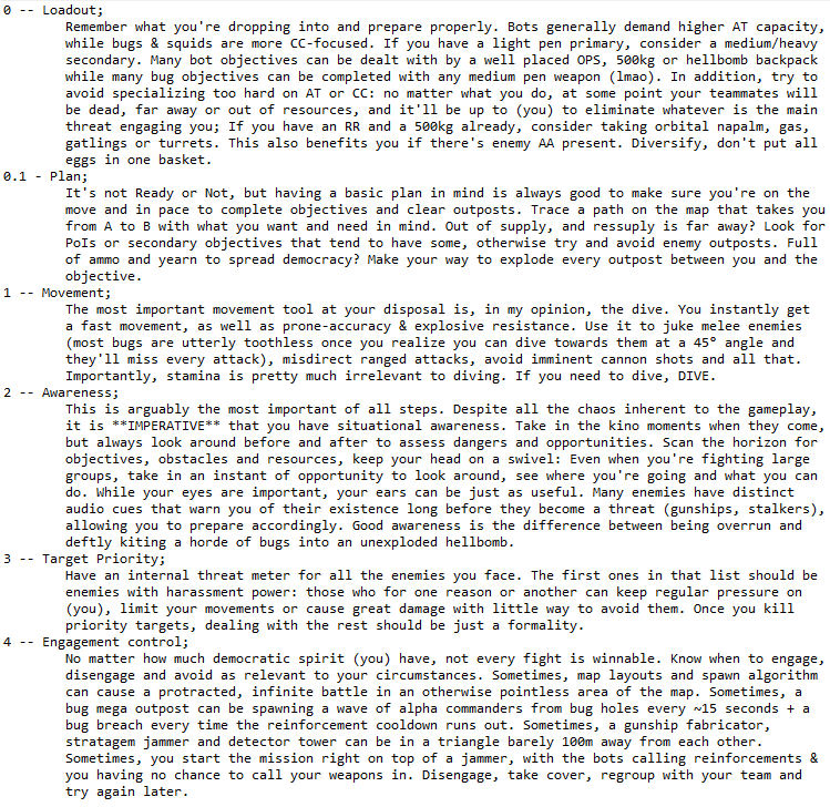 ye olde: >>556533735>WHAT IS HELLDIVERS 2?HELLDIVERS 2 is a 2024 crossplay, co-op, squad-based, PvE 3rd person shooter for PC, PS5 and XBox Series X/S where players fight against hordes of alien insects, robots and squids to Spread Democracy™. Players wage war on contested planets, each with a different biome, completing as many objectives as possible in a procedurally generated level while constrained by a time limit. With enough successful missions, a planet can be defended or liberated, and the player base must combine their efforts as much as possible to Liberate™ the galaxy.https://store.steampowered.com/app/553850/HELLDIVERS_2/https://www.playstation.com/en-us/games/helldivers-2/https://www.xbox.com/en-us/games/store/helldivers-2/9mx9wn9dfpgt>WHAT ABOUT THE FIRST HELLDIVERS GAME?Released in 2015 for PC, PS3/4 and PS Vita, the original HELLDIVERS is a shared screen top-down shooter in the same setting. Its mechanics were based primarily on Arrowhead's first game, Magicka.https://store.steampowered.com/app/394510/HELLDIVERS_Dive_Harder_Edition/https://www.playstation.com/en-us/games/helldivers/>LOBBY HOSTINGhttps://files.catbox.moe/83ixkr.png>MODDINGhttps://files.catbox.moe/c81ogo.png>INFORMATION RESOURCEShttps://helldivers.wiki.gg/https://helldiverscompanion.com/https://democracy-hub.nethttps://helldive.live